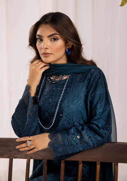 (Blue) 3 Pc Luxury Chikankari Lawn Dress-Simrans