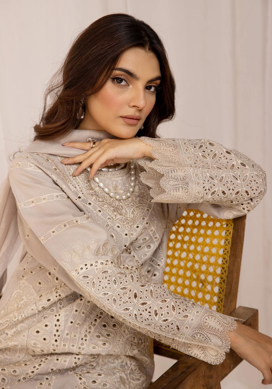 (Beige) 3 Pc Luxury Chikankari Lawn Dress-Simrans