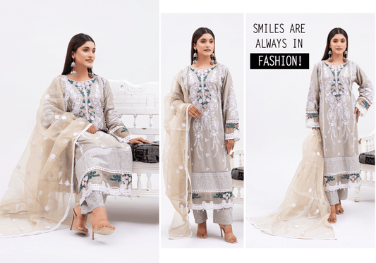 Light Grey 3 Pc Embroidered Lawn Collection-Rangz