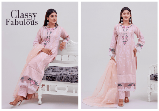 Peach 3 Pc Embroidered Lawn Collection-Rangz