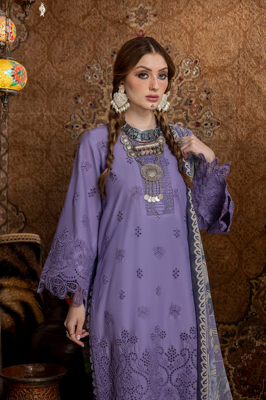 Lilac 3 Pc Festive Embroidered Cotton dress - Rangz