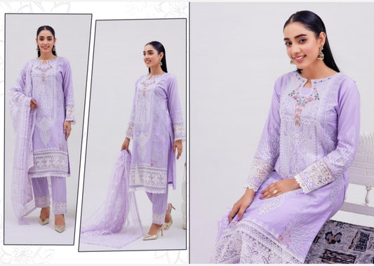 (Lavender) Chikenkari Lawn Ready to Wear 3 Pc Dress-Adan's Libas