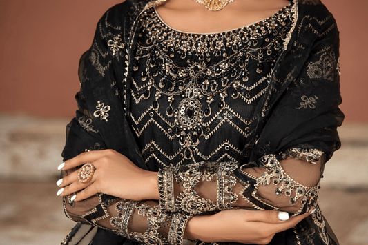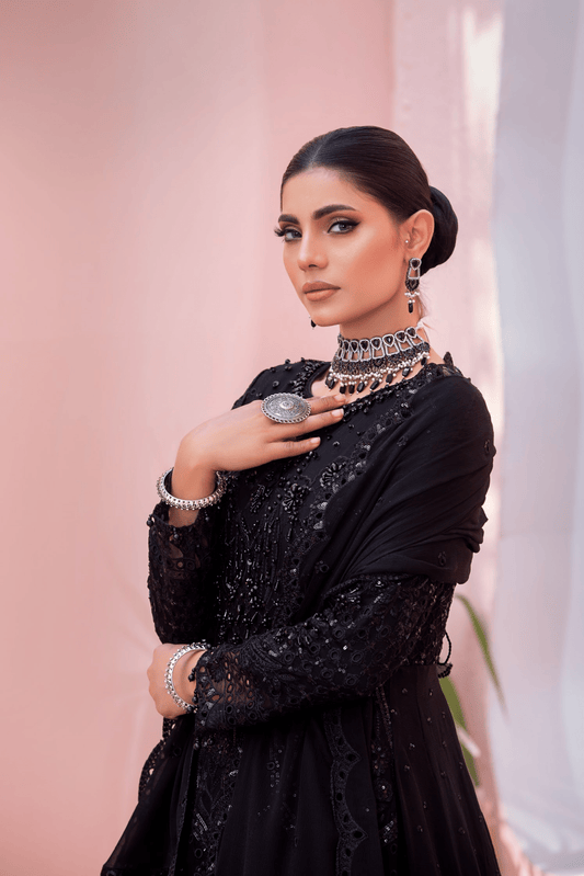 Regular price £89.99 GBPRegular priceUnit price perSale price £89.99 GBP(Black) 3 Pc Embroidered Chiffon Party Wear Dress-Differ