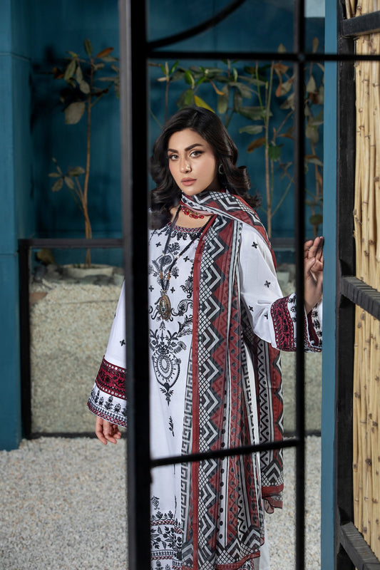 (White) 3 Pc Embroidered Cotton Collection-Heera's