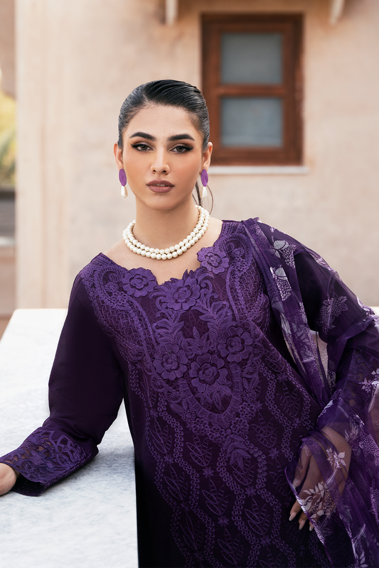 (Purple) "MIZAJ" Embroidered Lawn 3Pc Collection-Esra Fashion