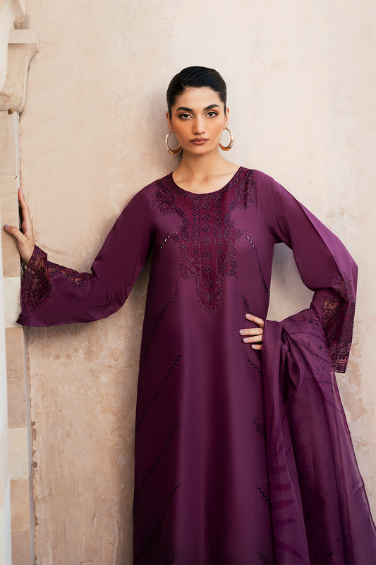 (Plum) "MIZAJ" Embroidered Lawn 3Pc Collection-Esra Fashion