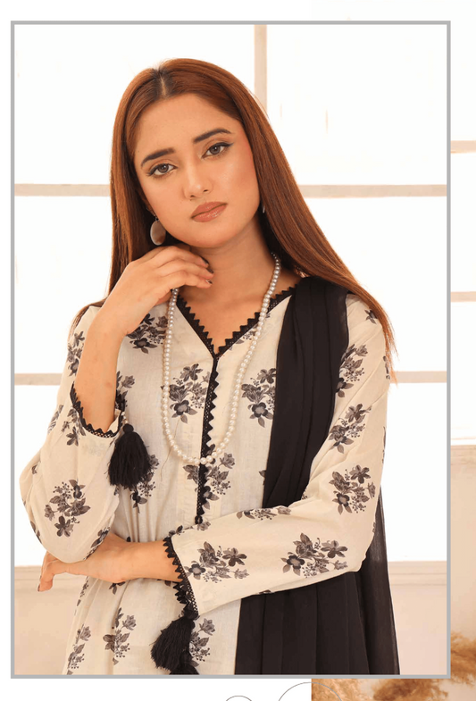 Regular price £24.99 GBPRegular priceUnit price perSale price £24.99 GBP(Black) Printed Lawn 3 Pc Dress By Simrans