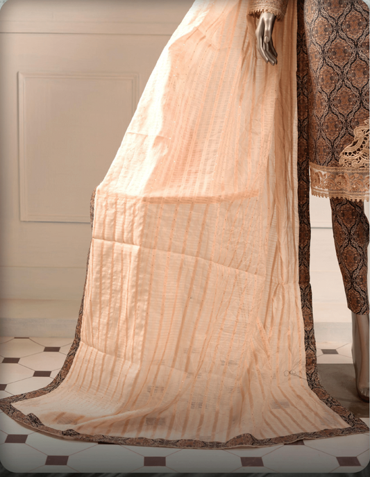 Regular price £14.99 GBPRegular priceUnit price per£29.99 GBPSale price £14.99 GBP(Brown) 3 Pc Embroidered Printed Lawn Dress (RIVAAJ)