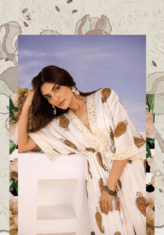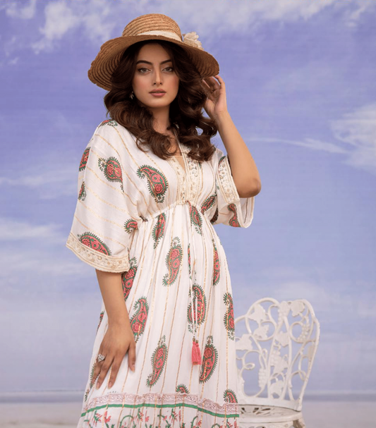 (Cream with Multi) "Summer Sizzler" Long kaftan Style Maxi-By Simrans