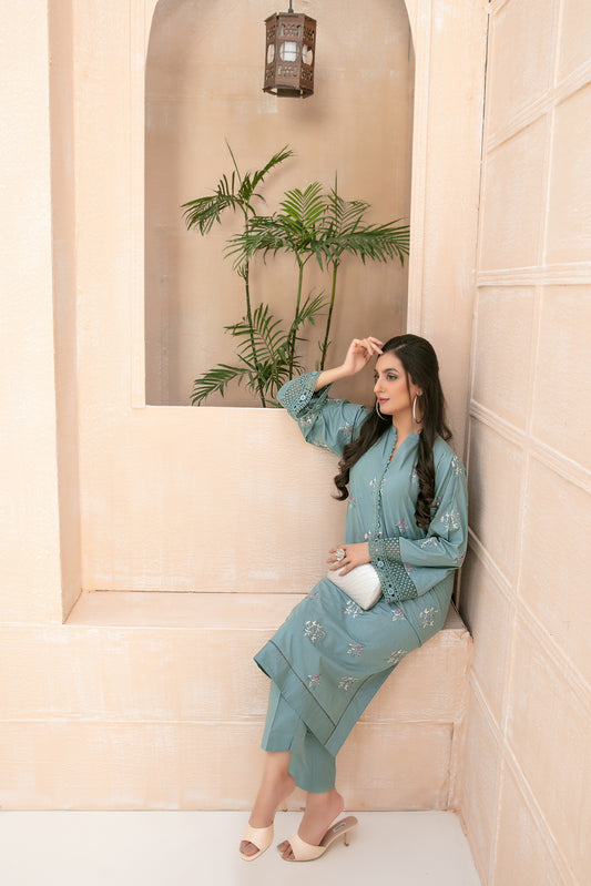 D-9053 2 Pc Embroidered Cotton Outfit - tawakkal