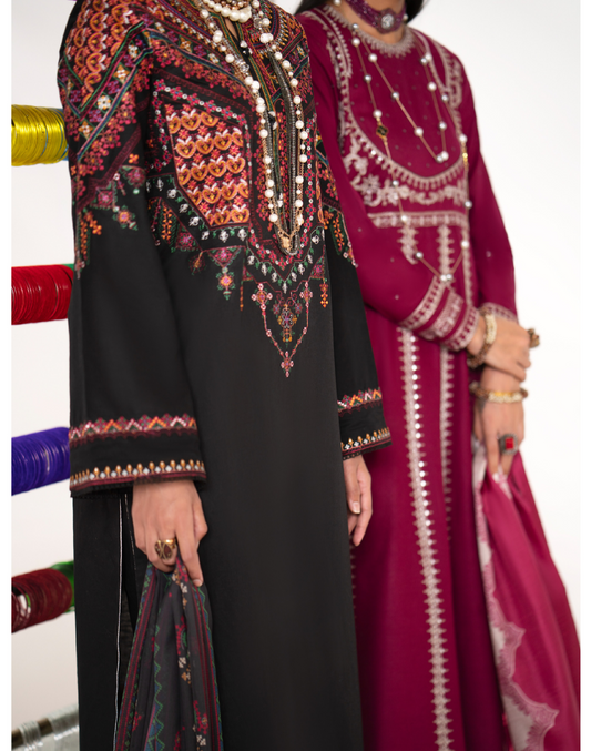 (Black) 3 Pc Summer Pret Vol 5 Embroidered dress - Casuallite