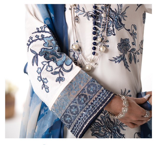 (Blue) 3 Pc Summer Pret Vol 5 Embroidered dress - Casuallite