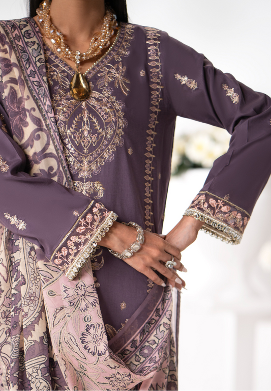 (Purple) 3 Pc Summer Pret Vol 5 Embroidered dress - Casuallite