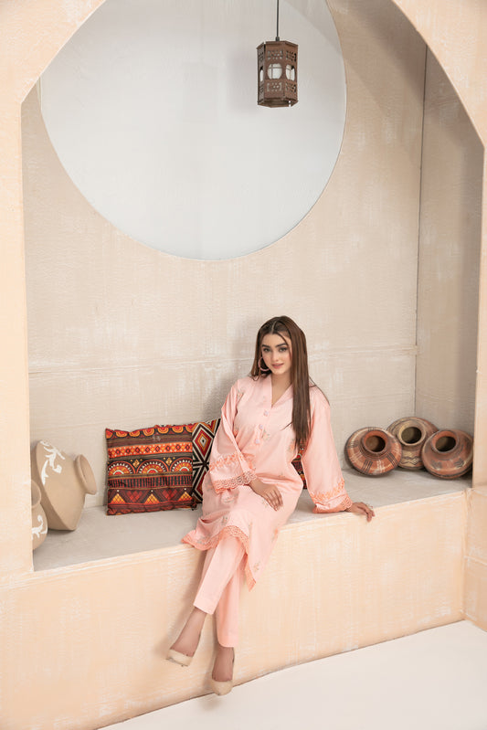 D-9041 2 Pc Embroidered Cotton Outfit - tawakkal