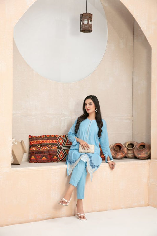 D-9043 2 Pc Embroidered Cotton Outfit - tawakkal