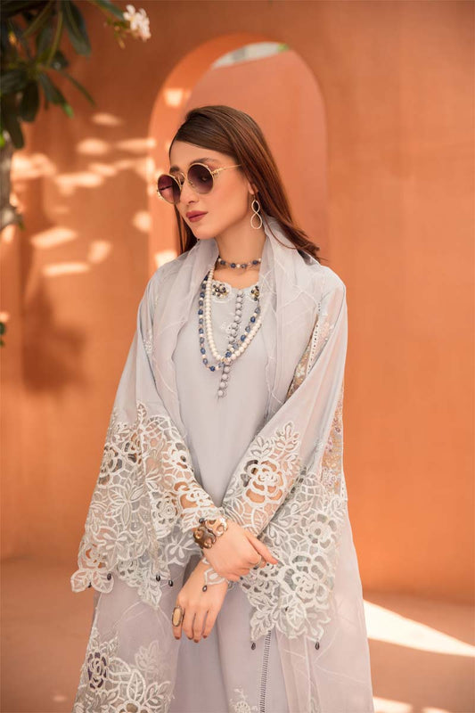 Regular price £43.99 GBPRegular priceUnit price perSale price £43.99 GBP(Grey) 3 Pc "NAKHRA" Embroidered Luxury Lawn By Simrans