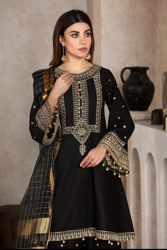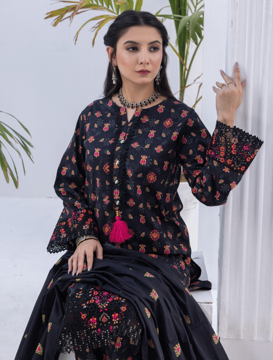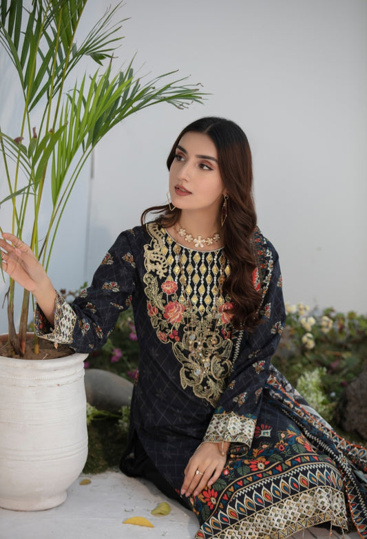 (BLACK) Embroidered 3 Piece Lawn Dress - Zainab Fazlani
