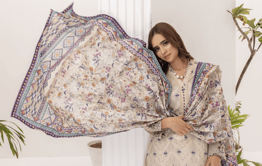 Regular price £14.99 GBPRegular priceUnit price per£29.99 GBPSale price £14.99 GBP(BEIGE) Embroidered 3 Piece Lawn Dress - Zainab Fazlani