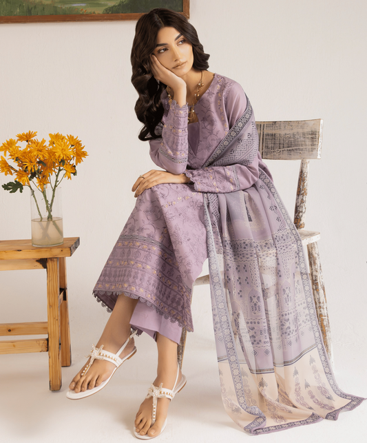 Lilac 3 Piece Embroidered Lawn Dress - Esra Fashion