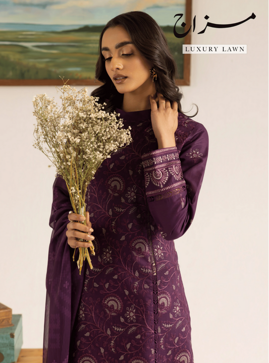 Plum 3 Piece Embroidered Lawn Dress - Esra Fashion