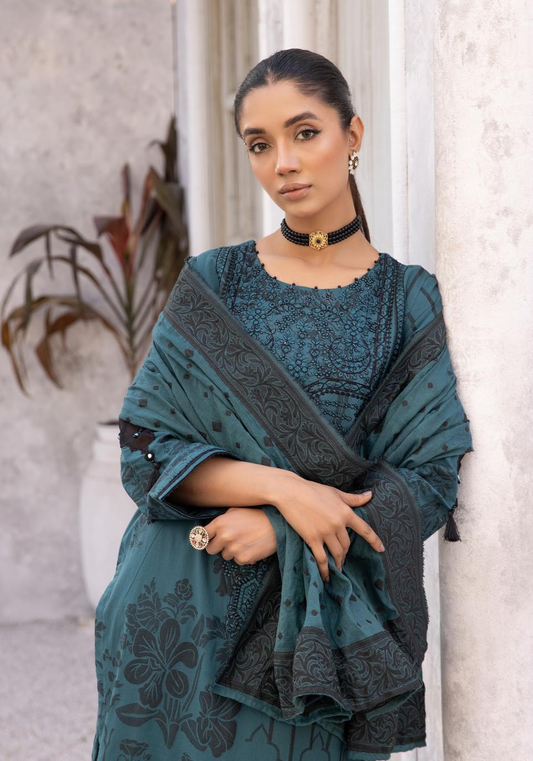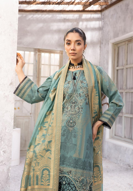 Regular price £39.99 GBPRegular priceUnit price perSale price £39.99 GBP(Sea Green) "Bella Festive" 3 Pc Embroidered Jacquard Dress by Simrans