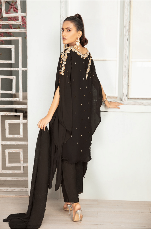(Black) SIMRANS ‘FUSION GLAM’ | Chiffon 3PC Ready To Wear