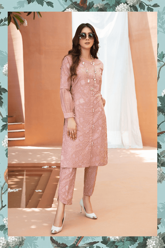 (Pink) 2 Piece Embroidered Lawn Outfit - Simrans