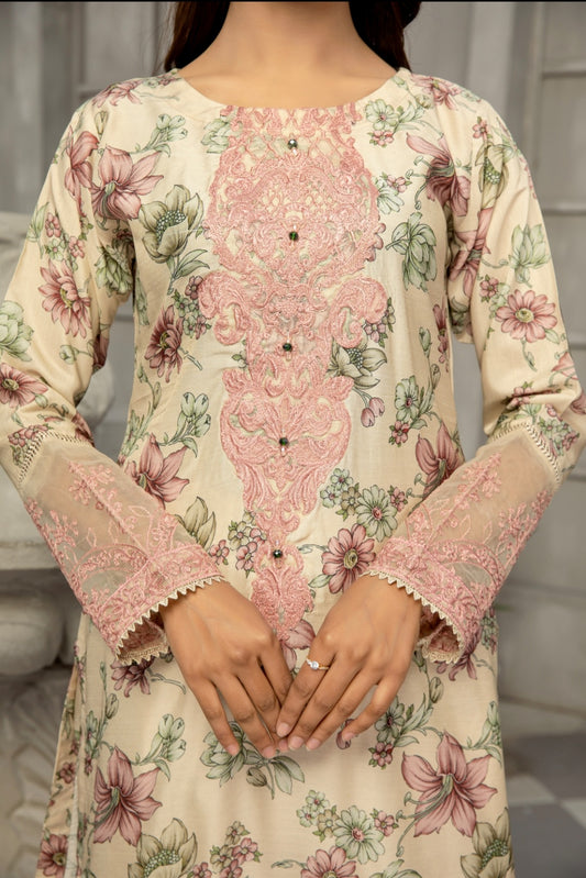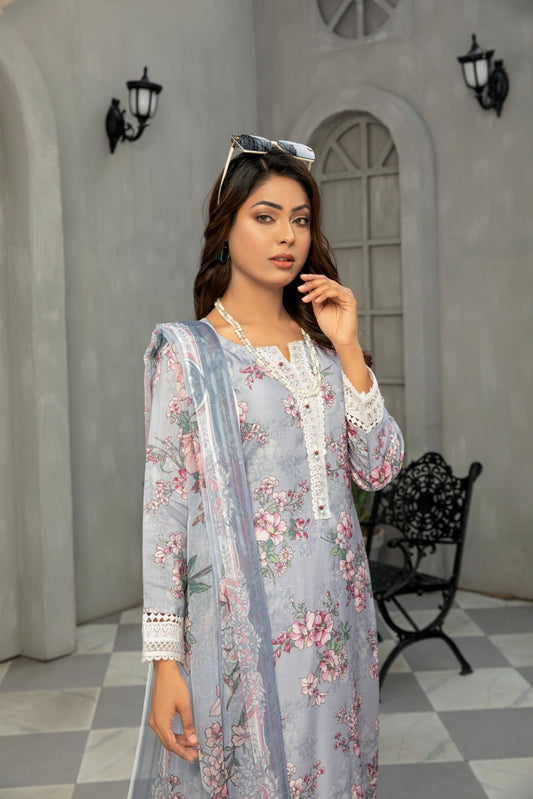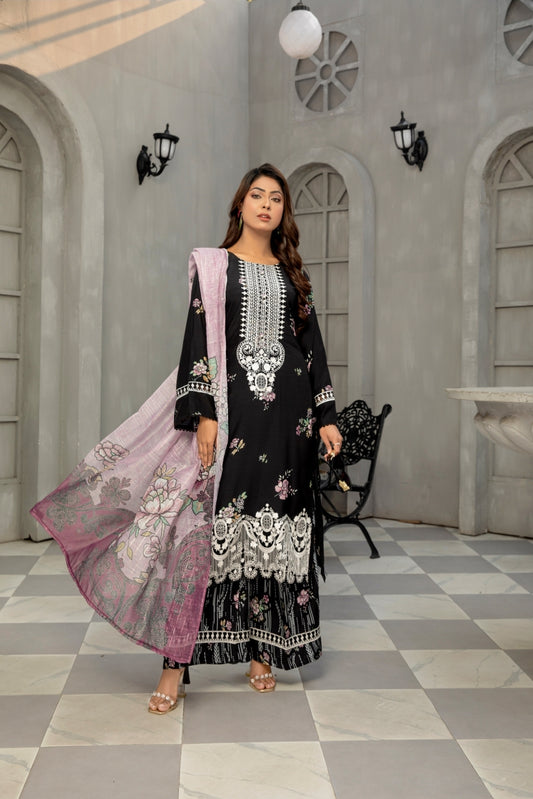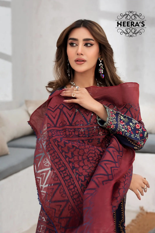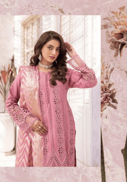 (GRADIENT GLEAM) 3 Pc Embroidered Cambric Cotton Suit-Heera's
