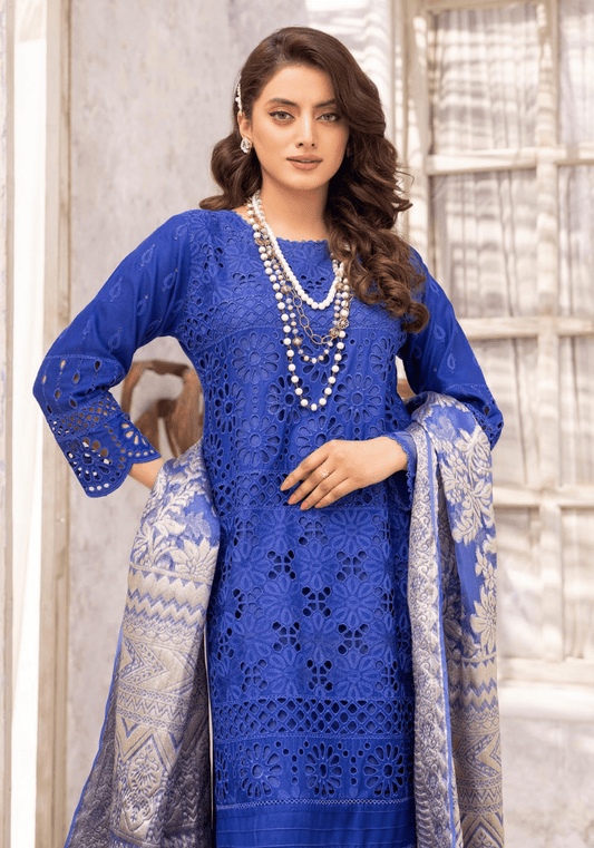 (Persian Blue) "IVY CHICKEN KARI" By SIMRANS | Linen 3pc Readymade