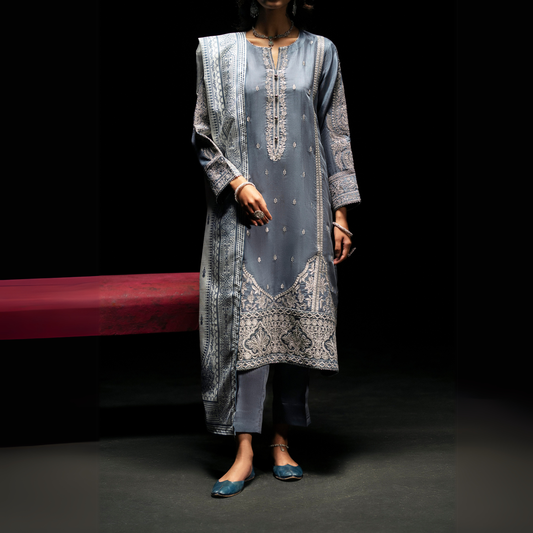 Regular price £29.99 GBPRegular priceUnit price perSale price £29.99 GBP(Light grey) 3 Piece Embroidered Dhanak Ready to Wear Collection by Casuallite | UMCAE0601