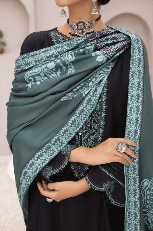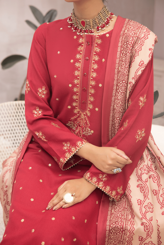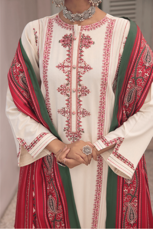3-Piece Embroidered Dhanak Dress with Pashmina Silk Shawl