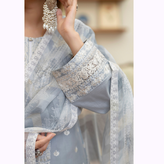 Regular price £49.99 GBPRegular priceUnit price perSale price £49.99 GBPKC-1481 Embroidered Luxury Chikankari Cambric Cotton Collection | Ready to Wear | Karma Collection