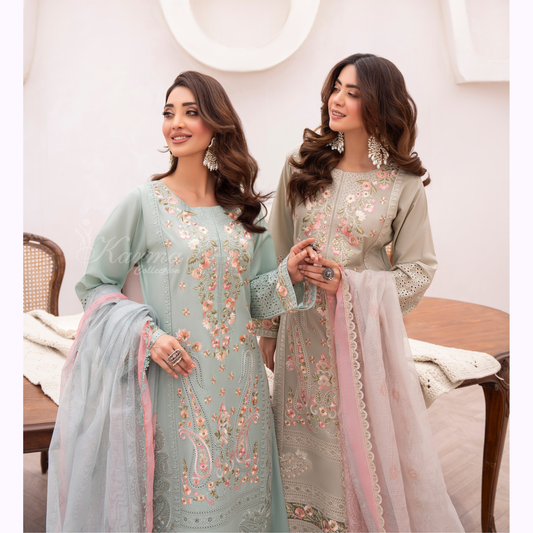 KC-1478 Embroidered Luxury Chikankari Cambric Cotton Collection | Ready to Wear | Karma Collection