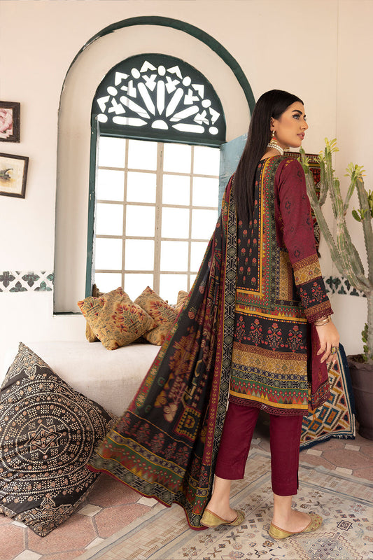 Red 2 Piece Printed Linen Stitched Suit-Bin Saeed