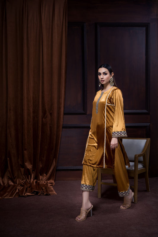Mustard Luxury Velvet | 2 Piece Embroidered | Premium Quality