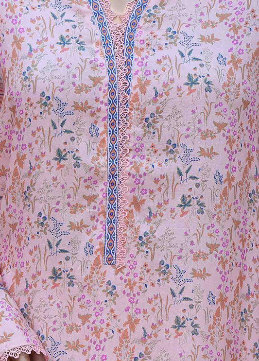 Pink 2 Piece Printed Linen Stitched Suit -Bin Saeed