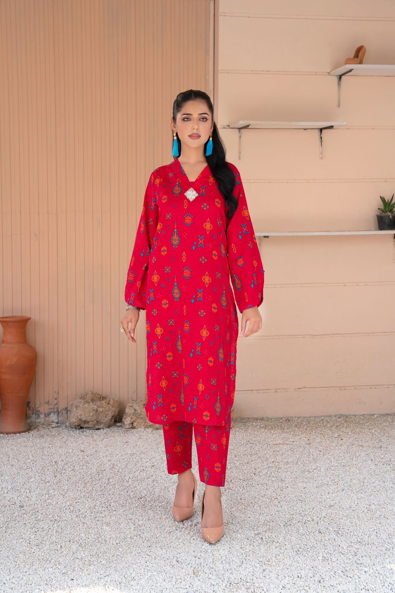 2- Piece Stitched Slub khaddar Outfit By RANIYA.H