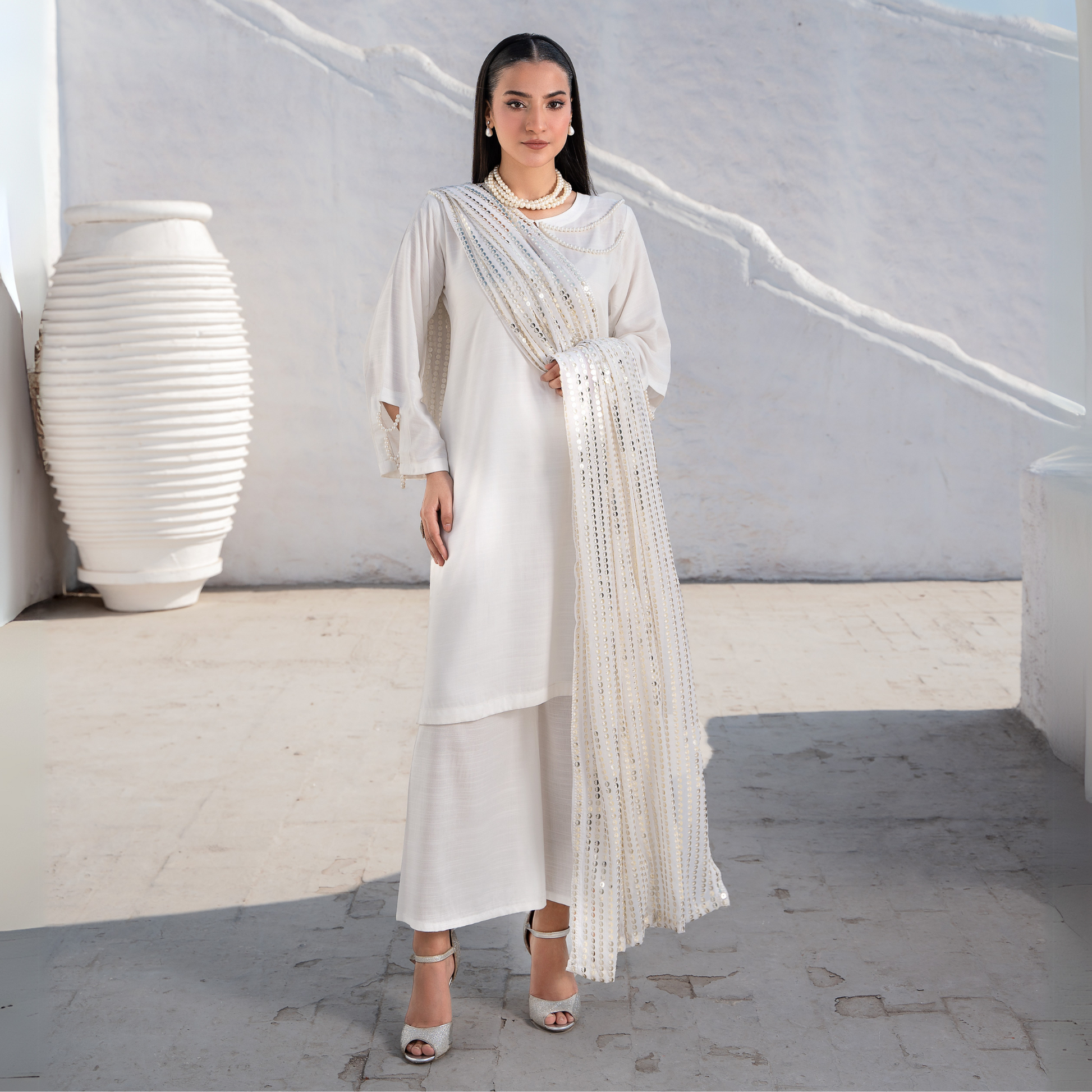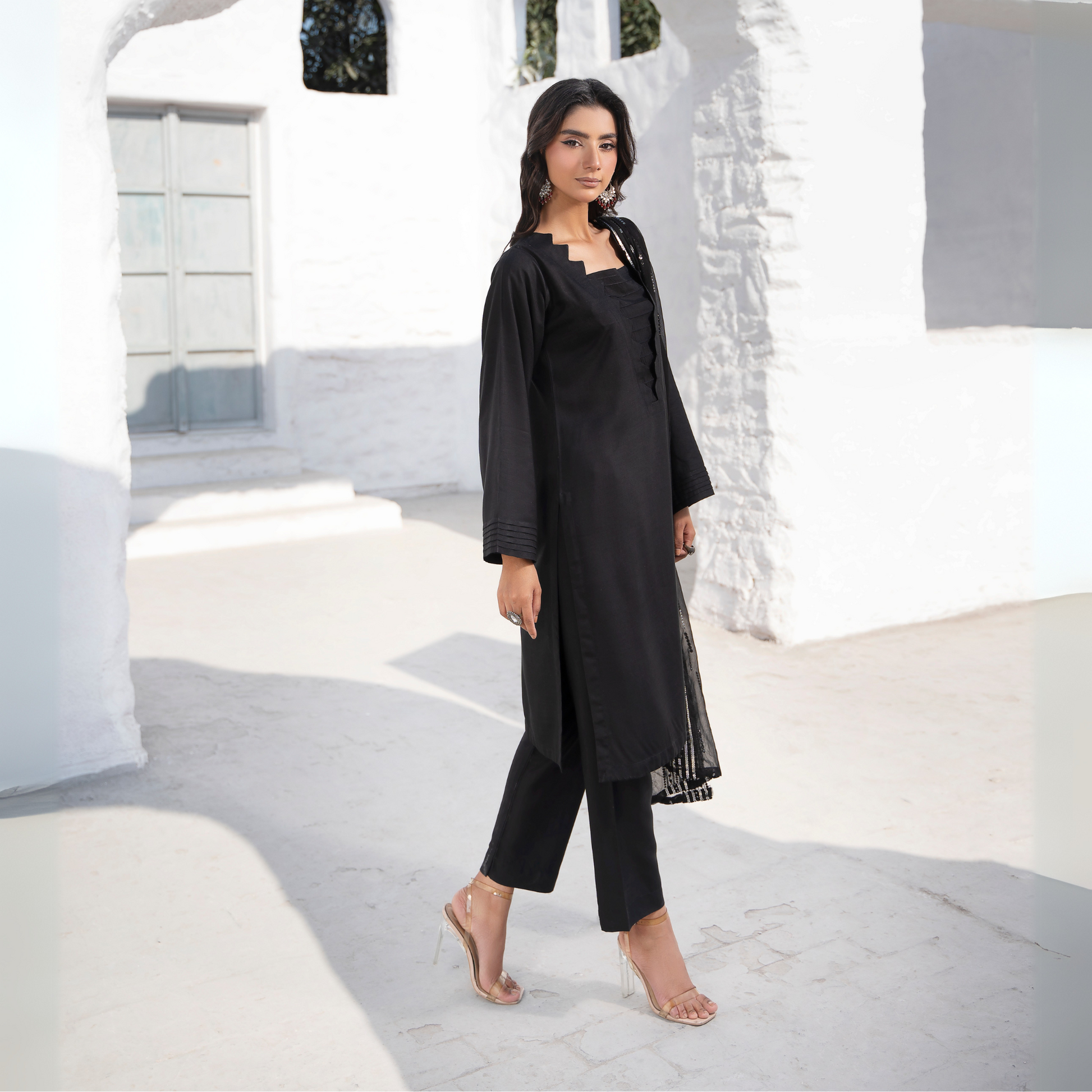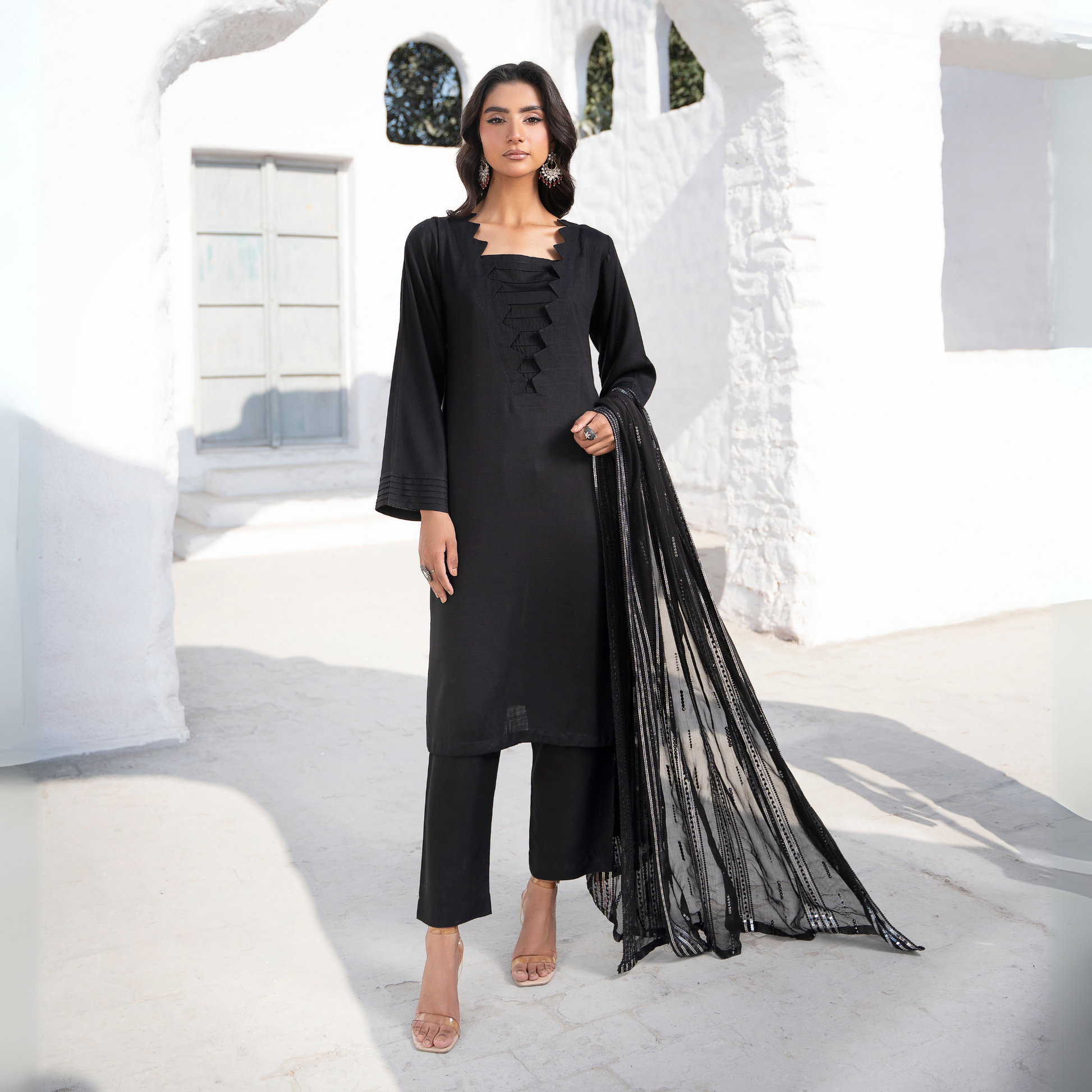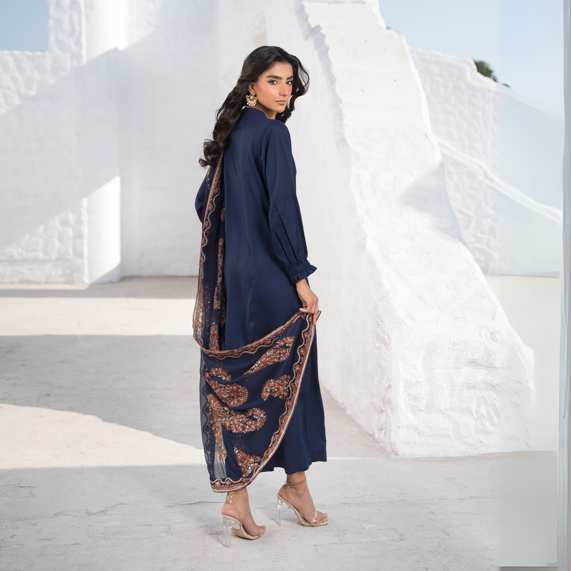 3 Pc Solid Slub Linen Dress with Embroidered Chiffon Dupatta| Winter Collection | Raniya.h | RA-13