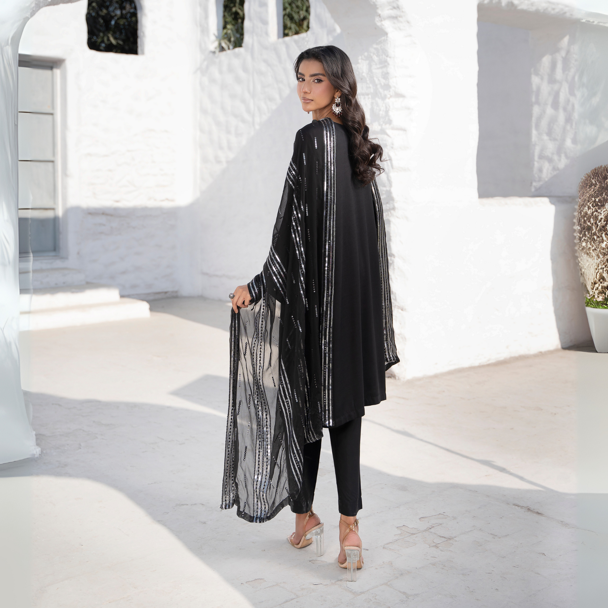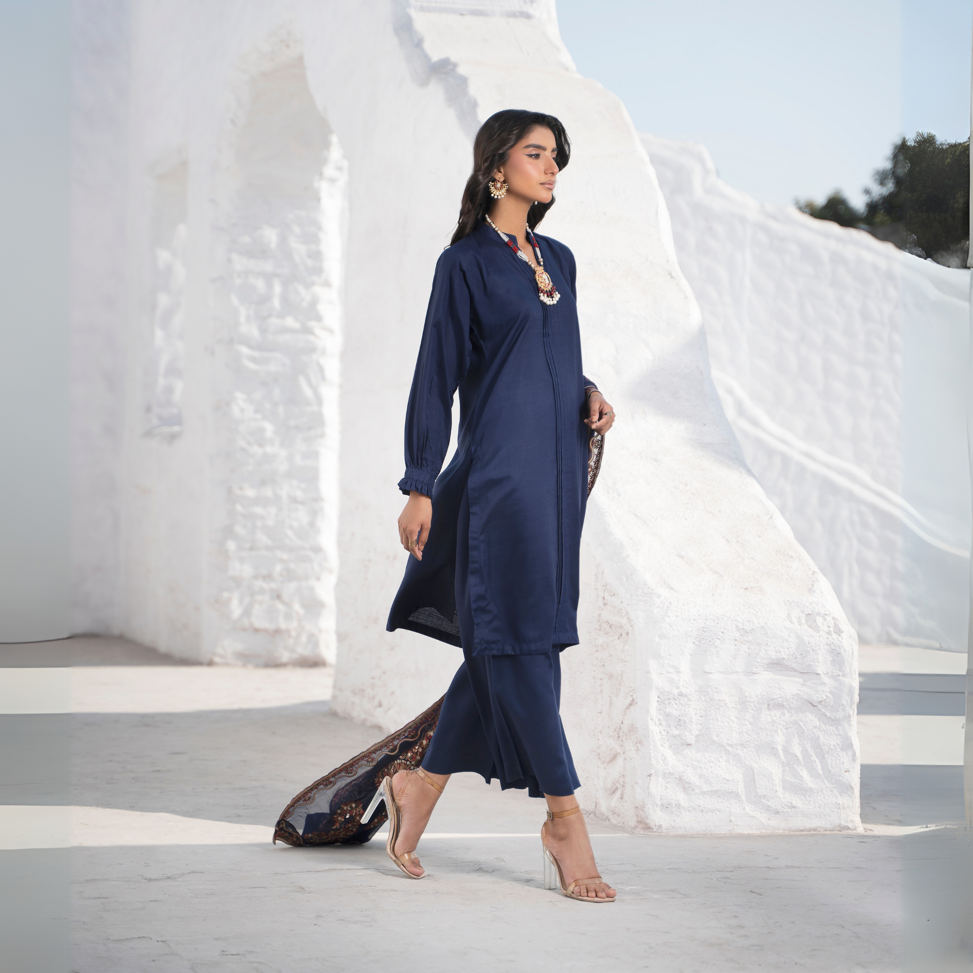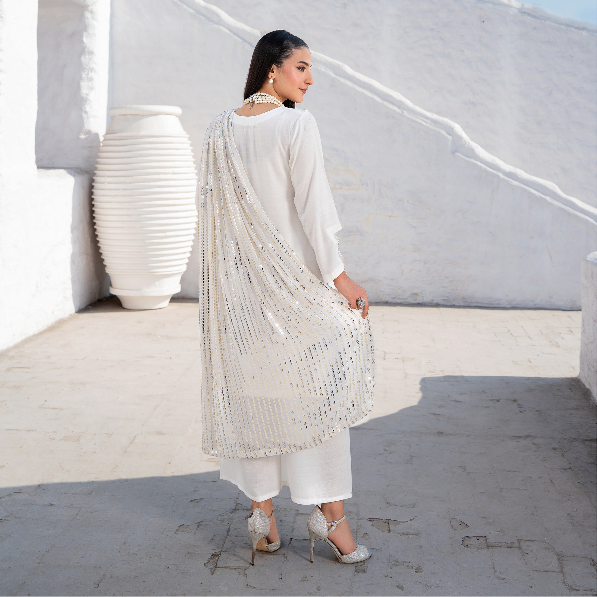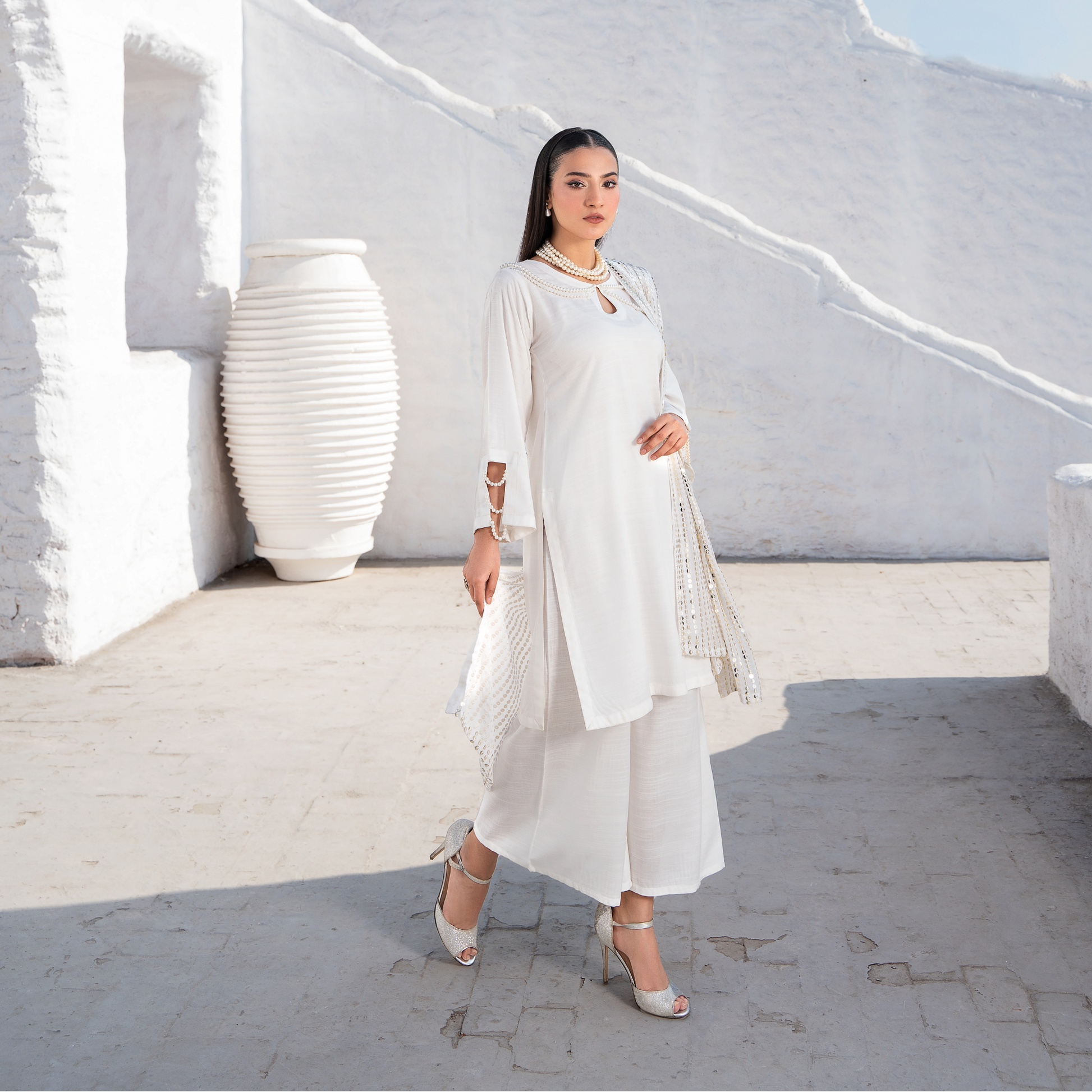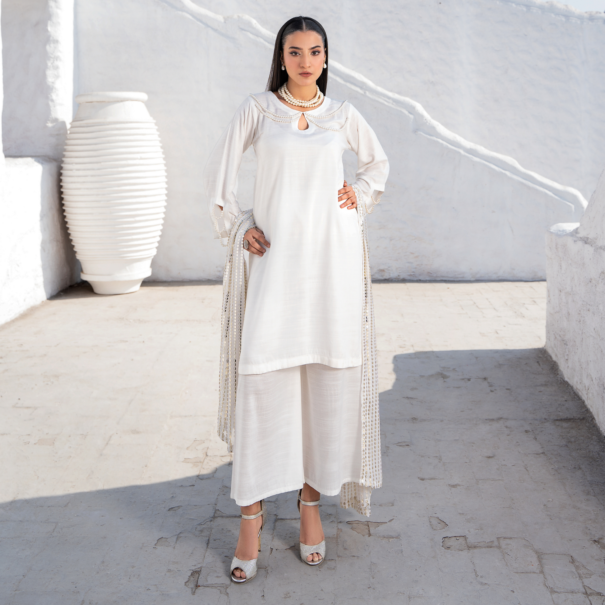 3 Pc Solid Slub Linen Dress with Embroidered Chiffon Dupatta| Winter Collection | Raniya.h | RA-13