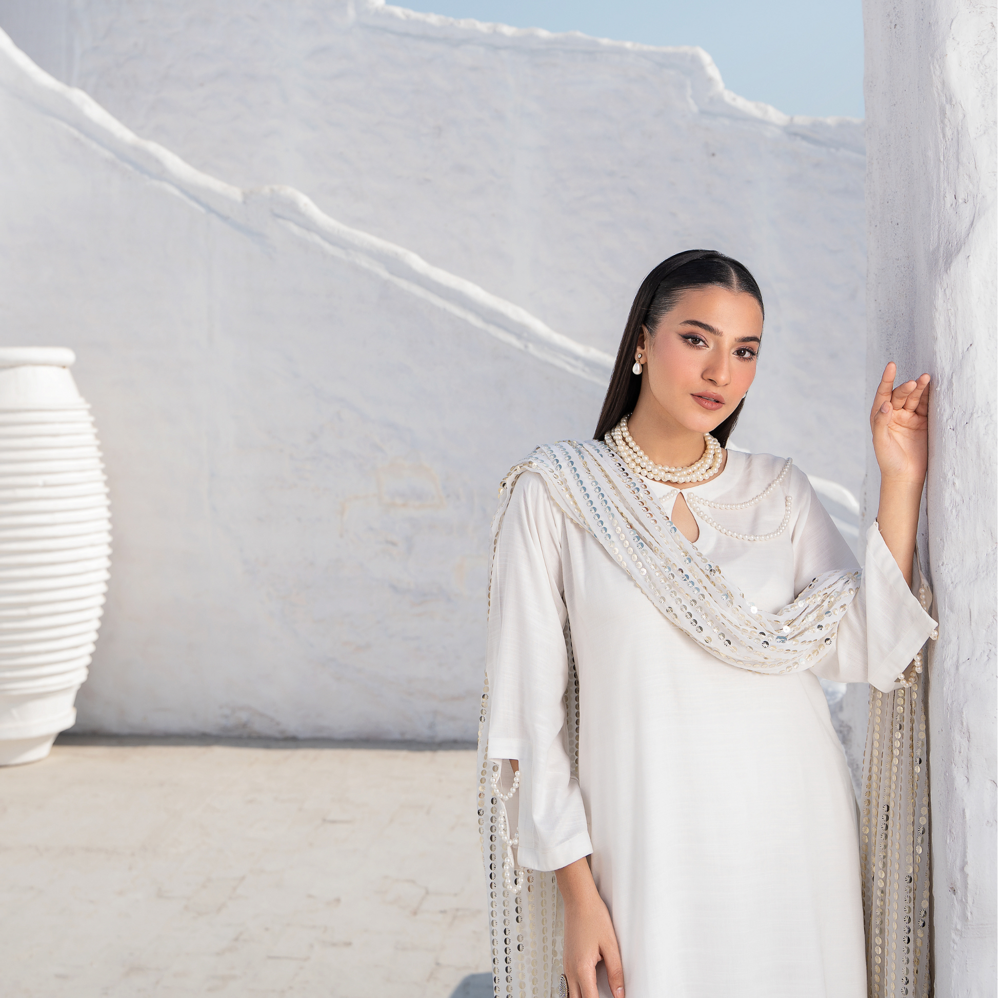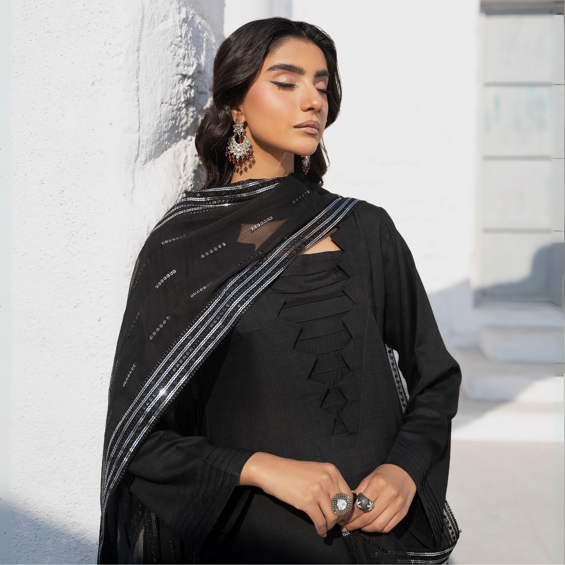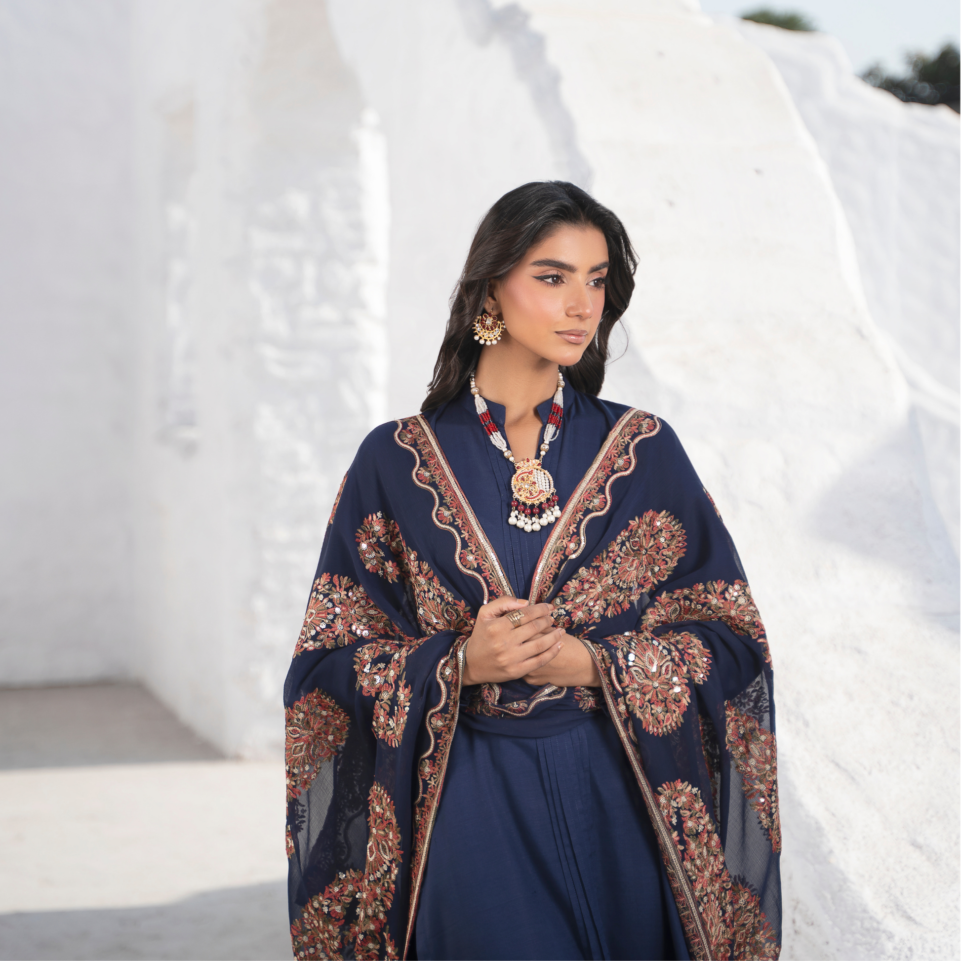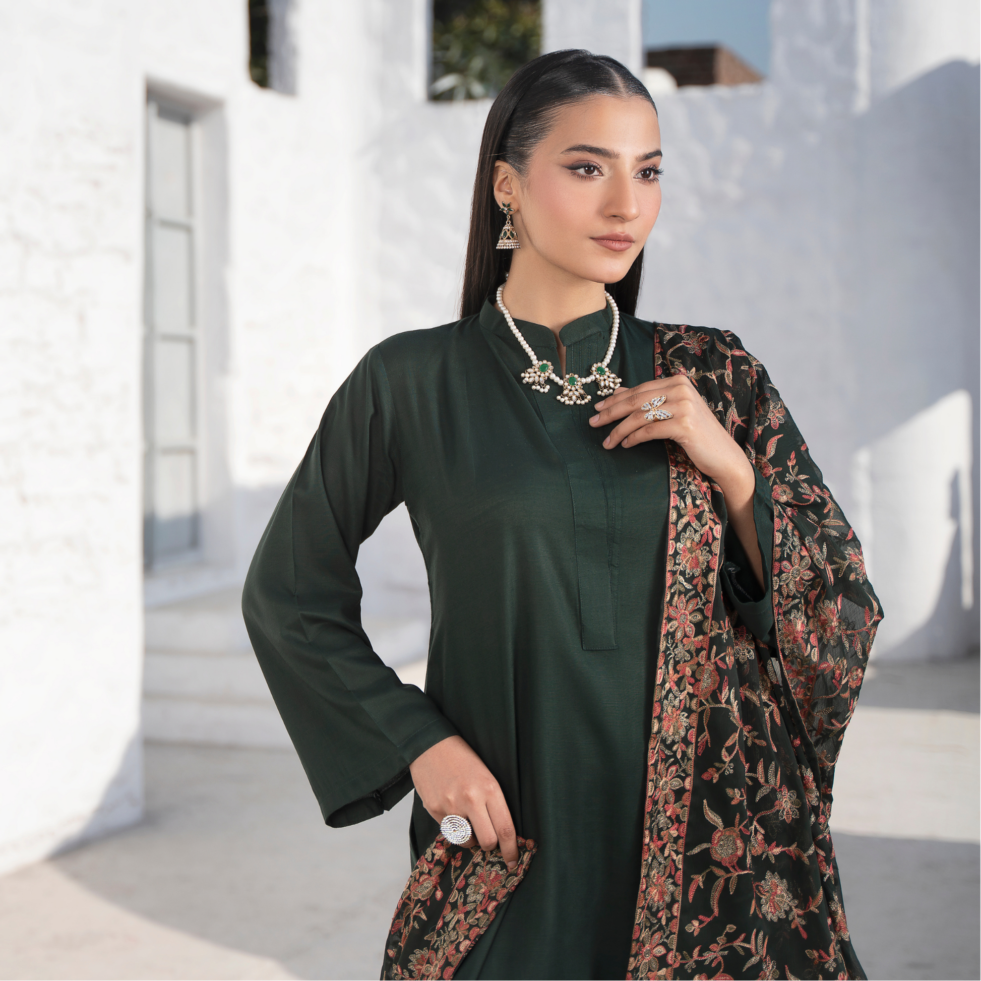 Elevate your wardrobe with this exquisite bottle green slub linen ensemble, Paired with a fully embroidered dupatta, adorned with intricate detailing, this outfit is a true embodiment of refined elegance. The rich textures and delicate craftsmanship add a touch of tradition, making it a timeless statement piece.