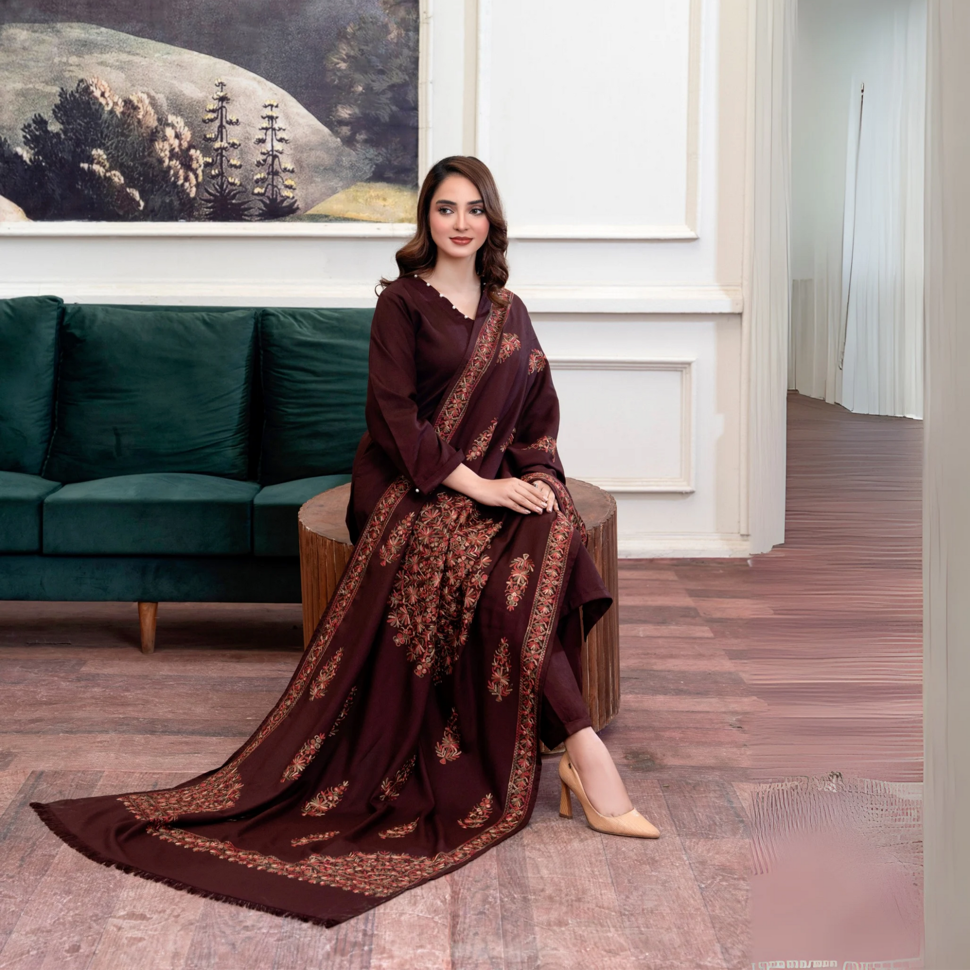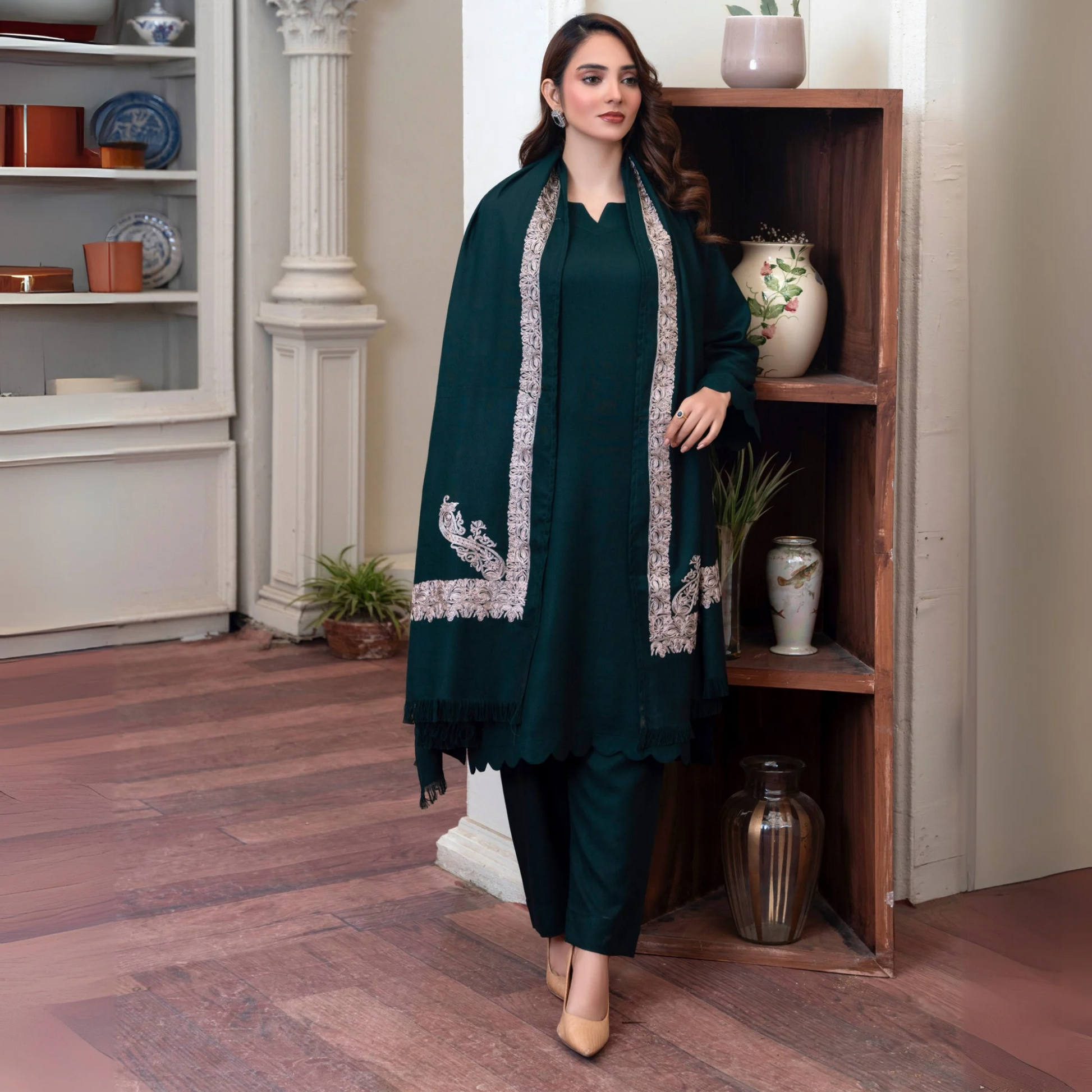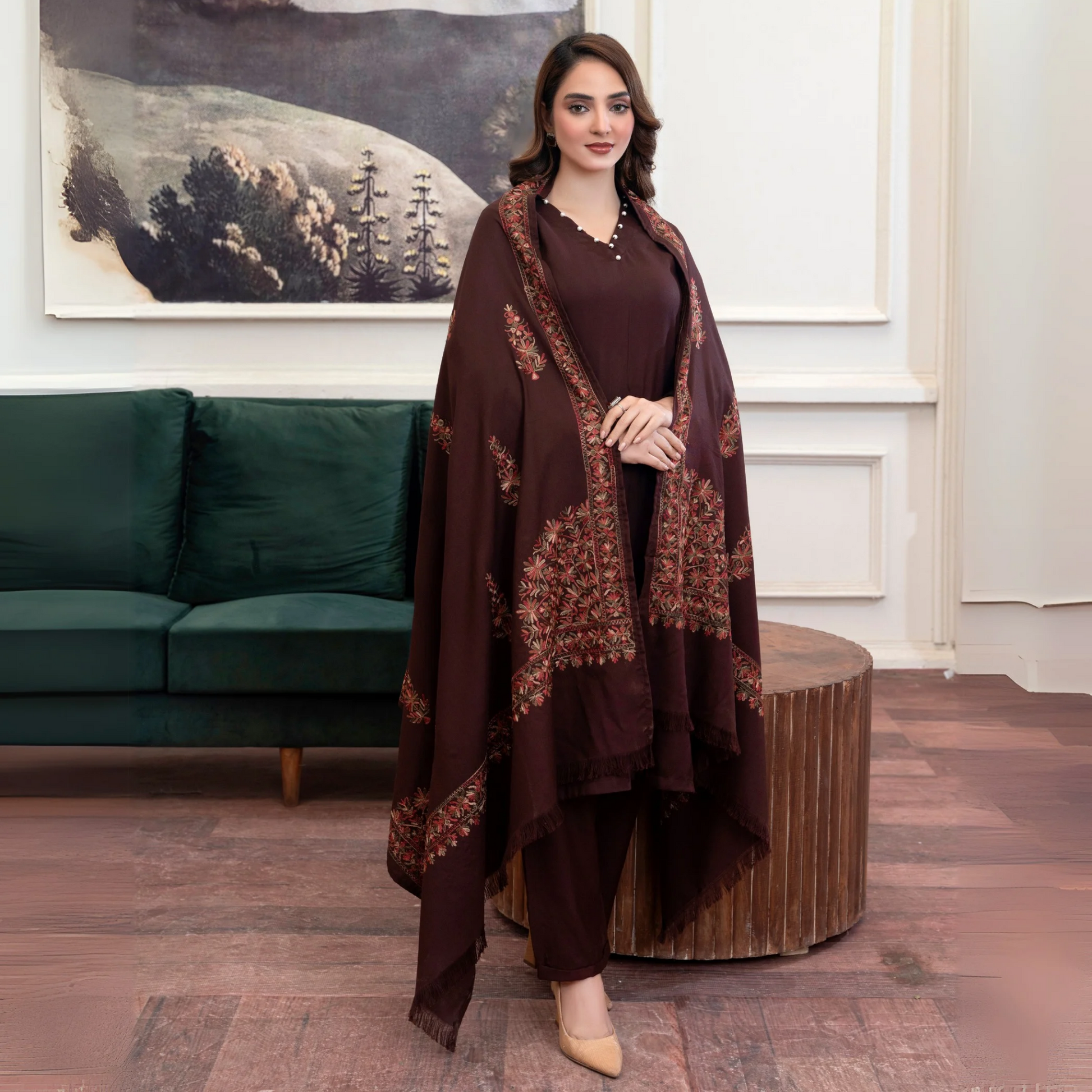 3 Pc Dhanak Dress with Embroidered Shawl | Winter Collection | Raniya.h | UMRAH01101