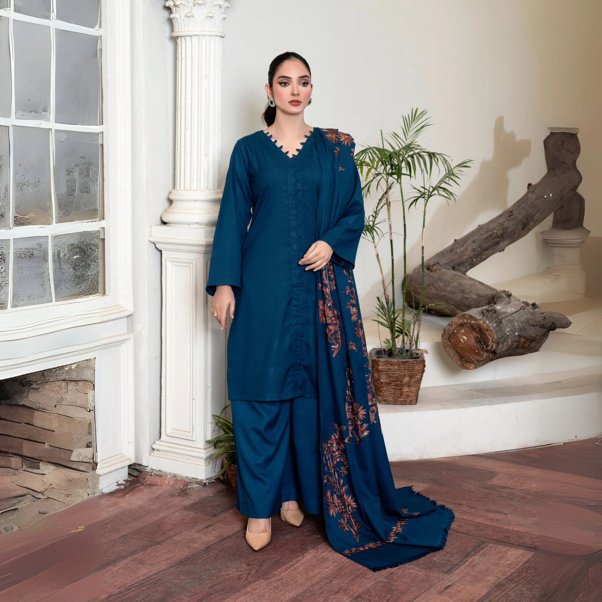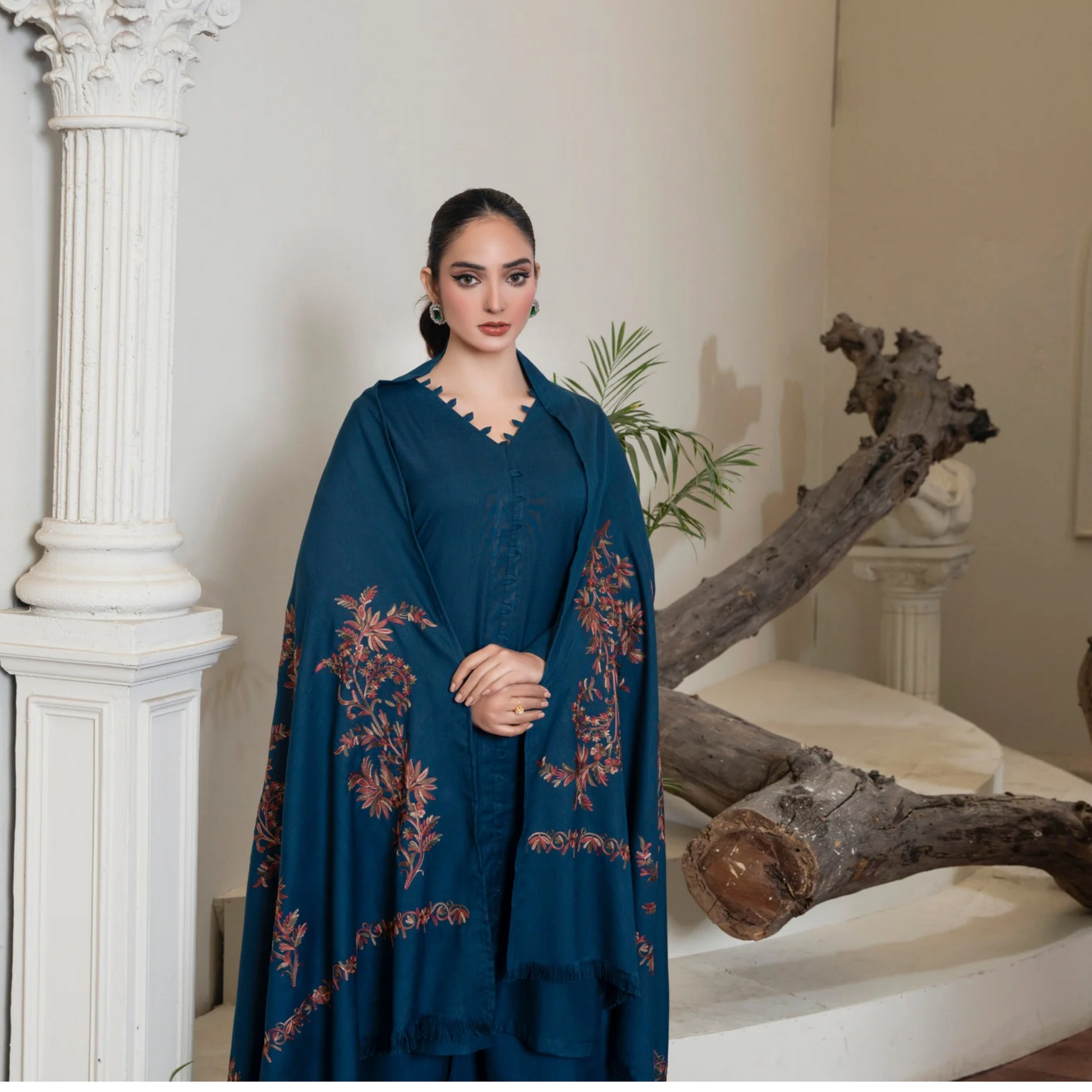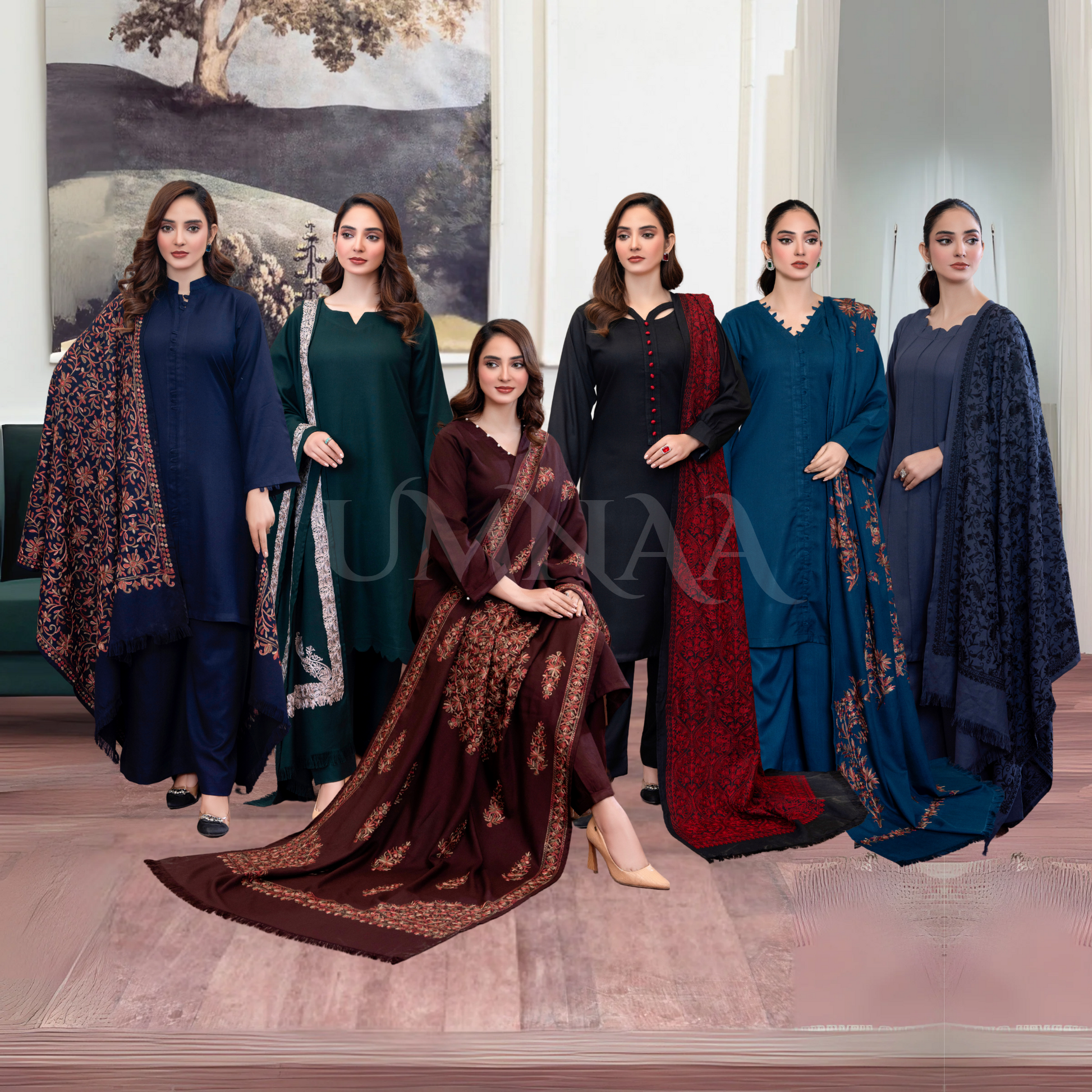 3 Pc Dhanak Dress with Embroidered Shawl | Winter Collection | Raniya.h | UMRAH01101