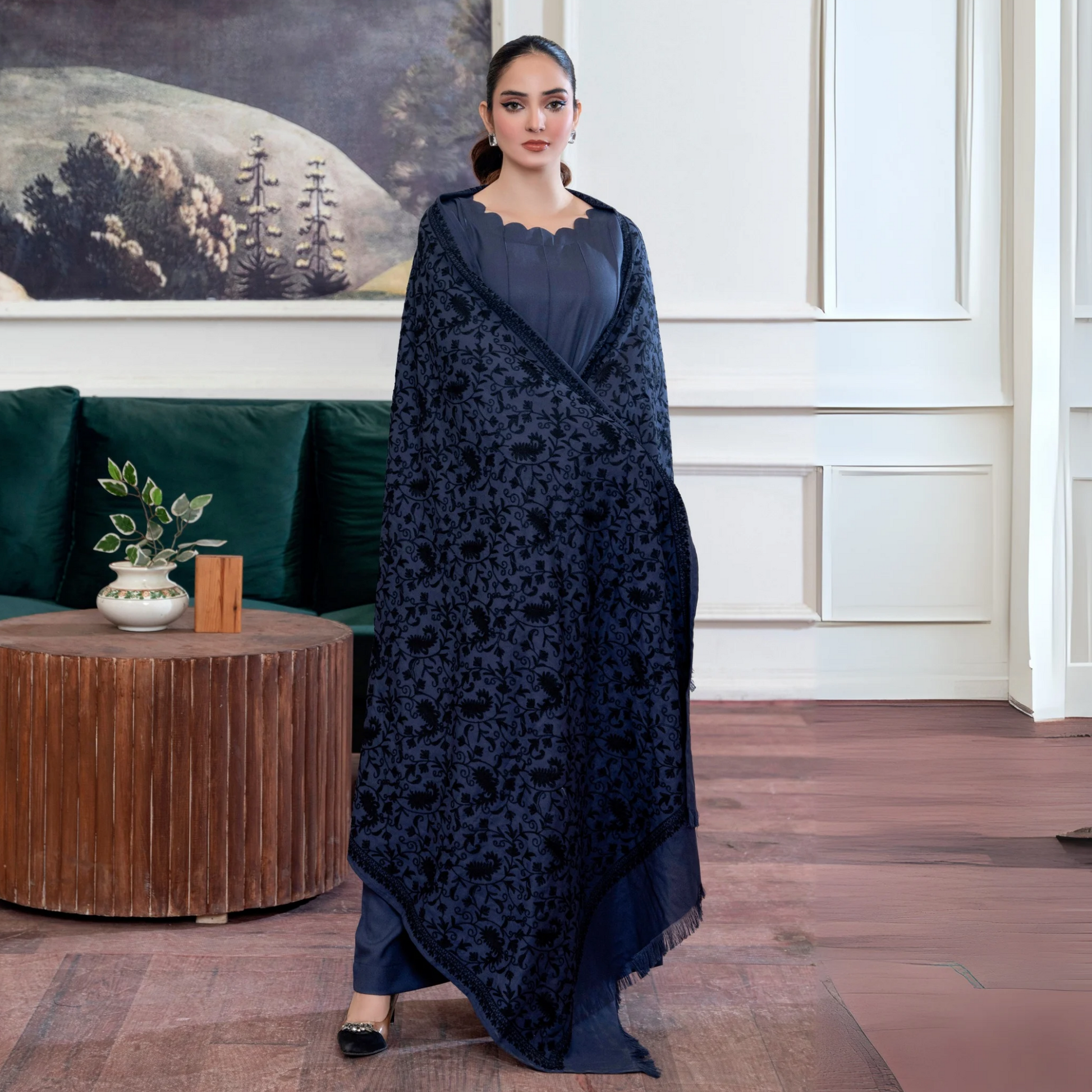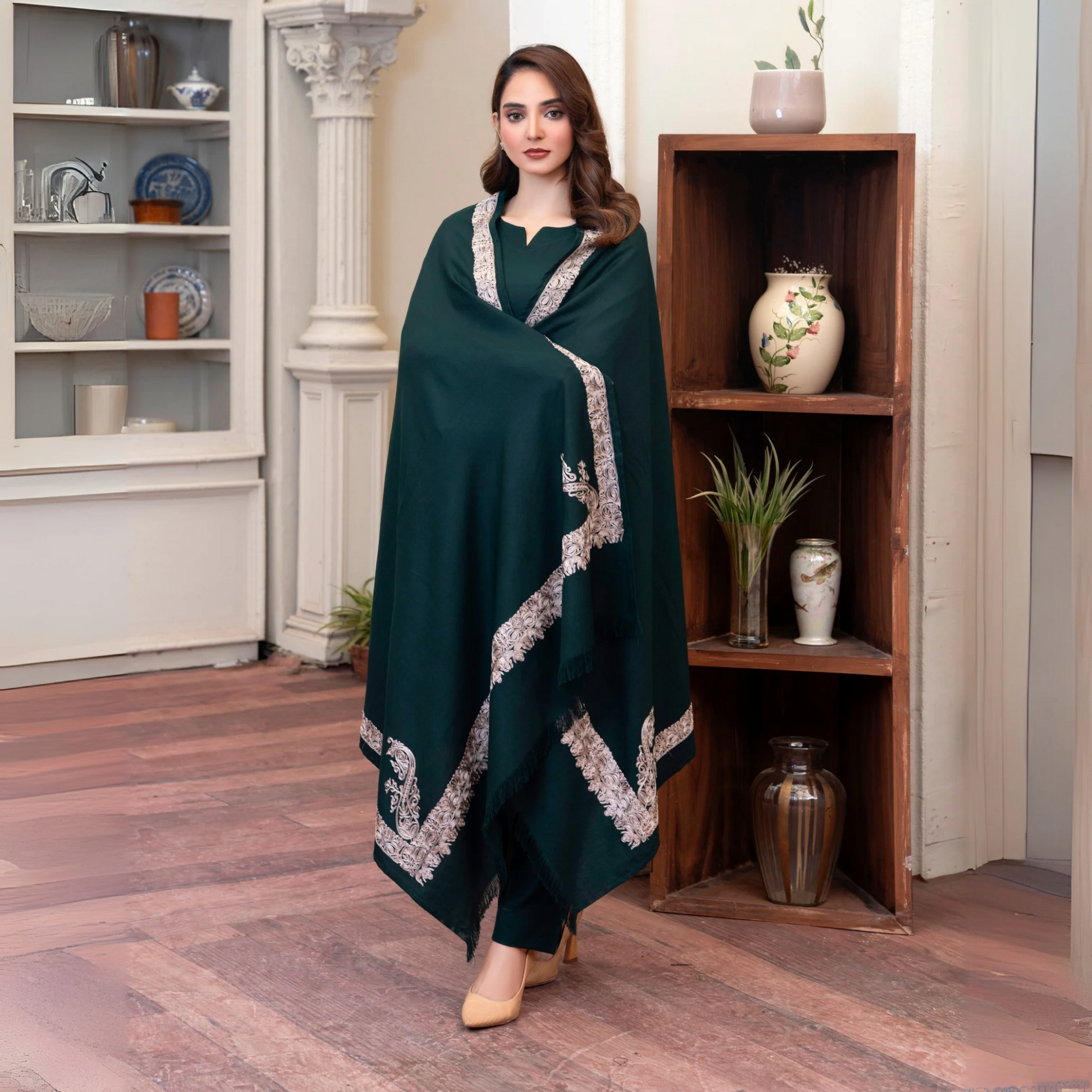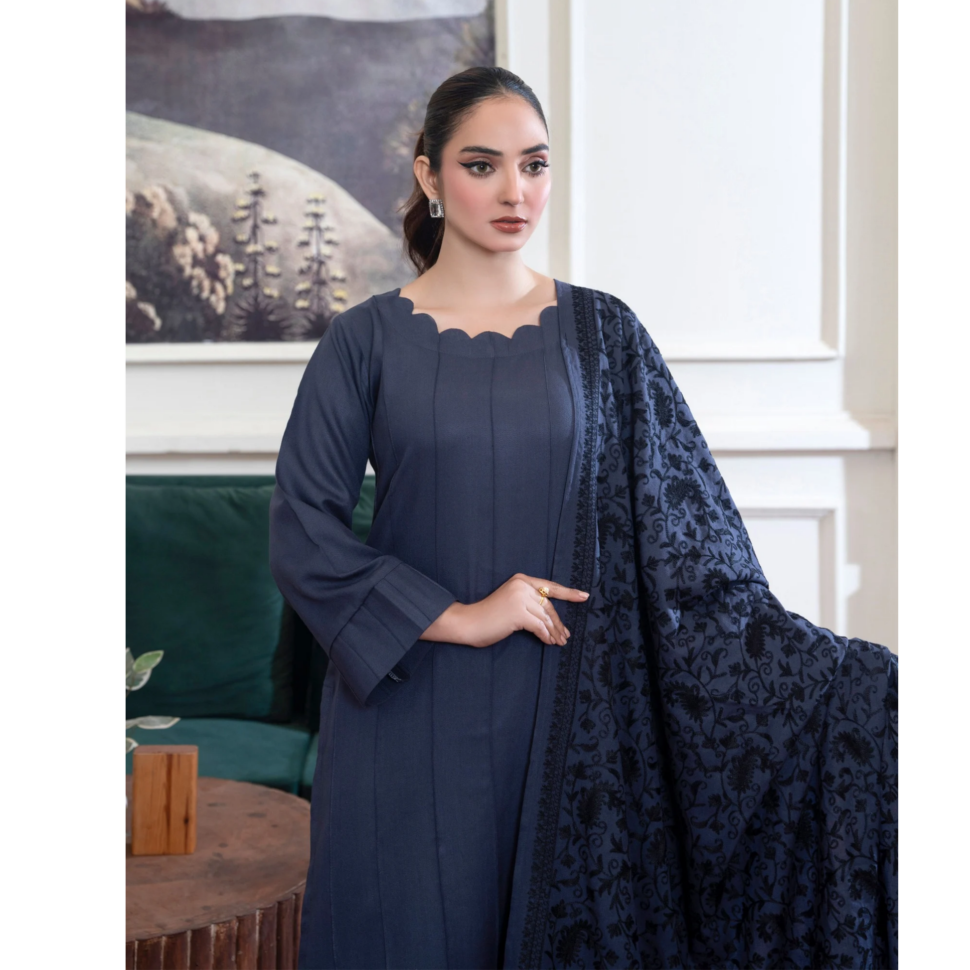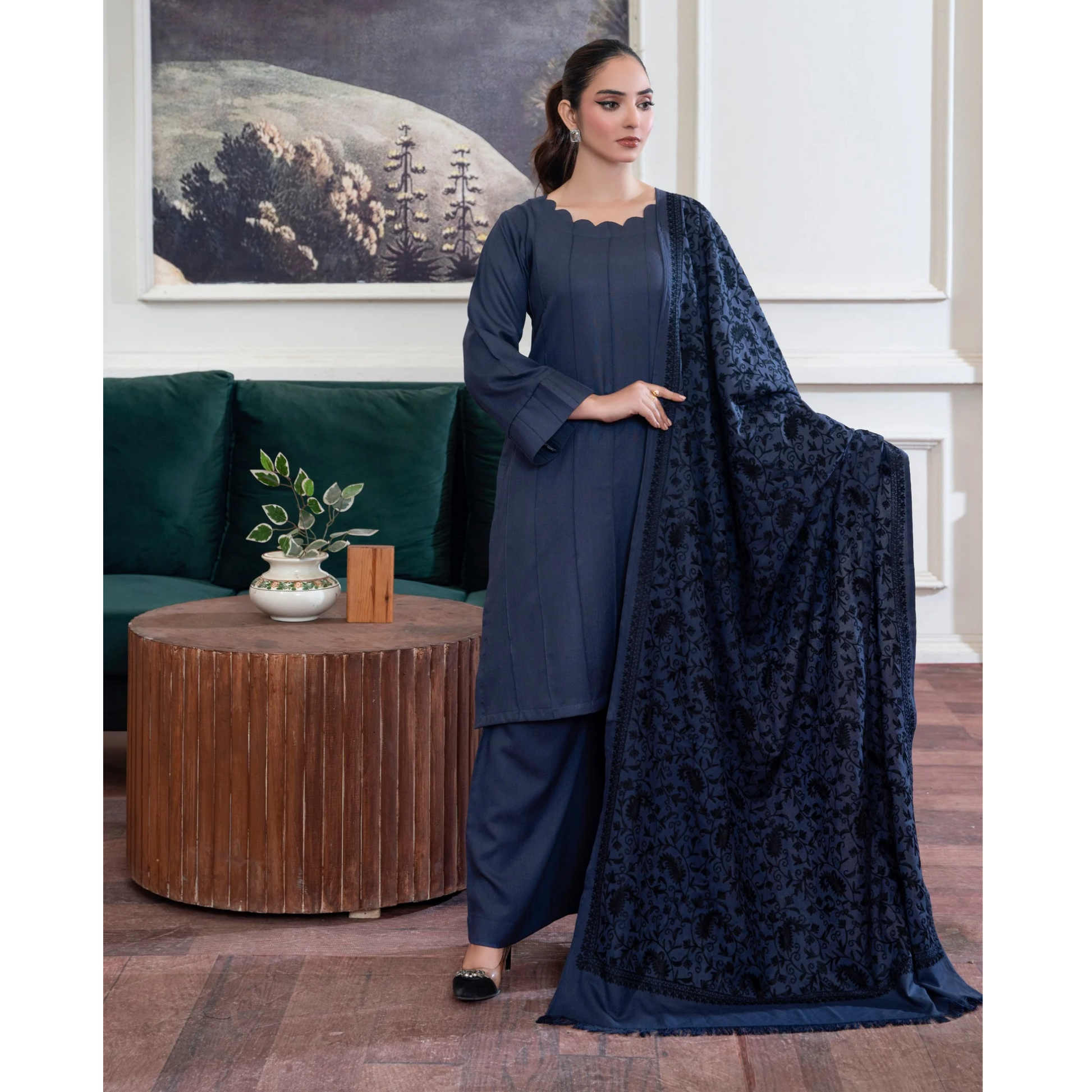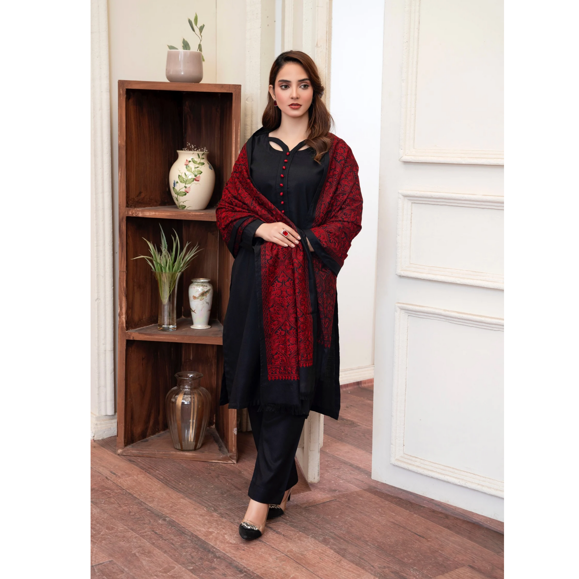 Introducing our stunning dress, made from luxurious Dhanak winter fabric. This dress is complemented by an intricately embroidered shawl, adding a touch of elegance. The shirt is designed in a chic stitching style, ensuring both comfort and fashion for the colder months.