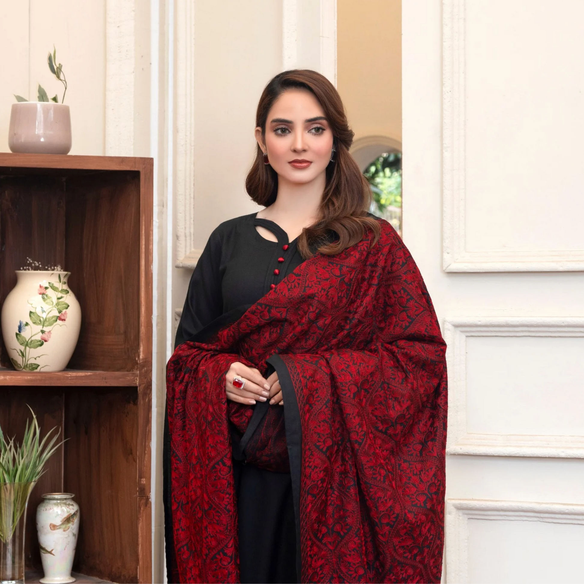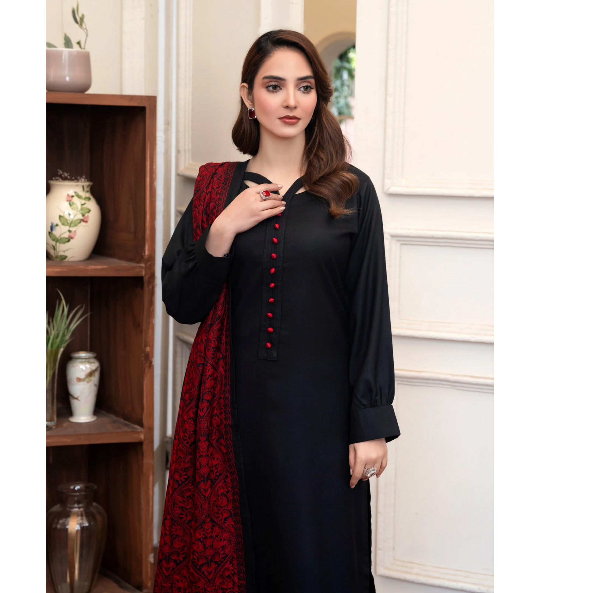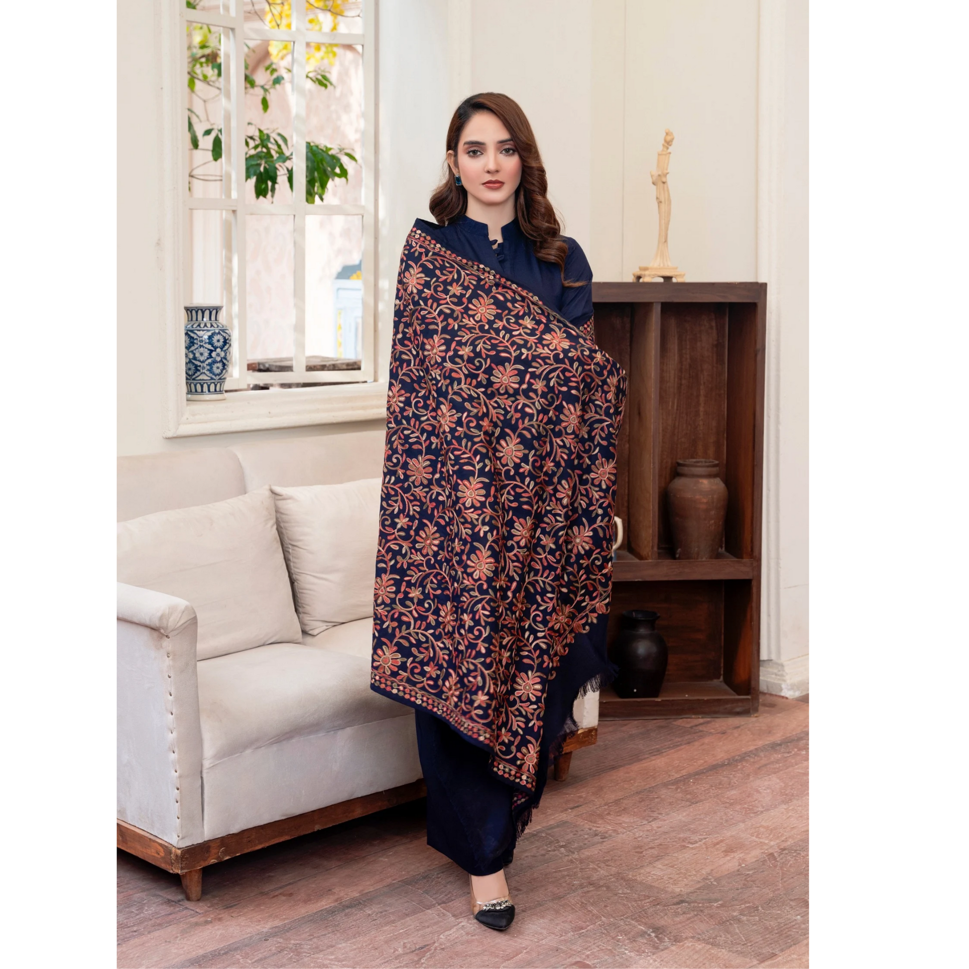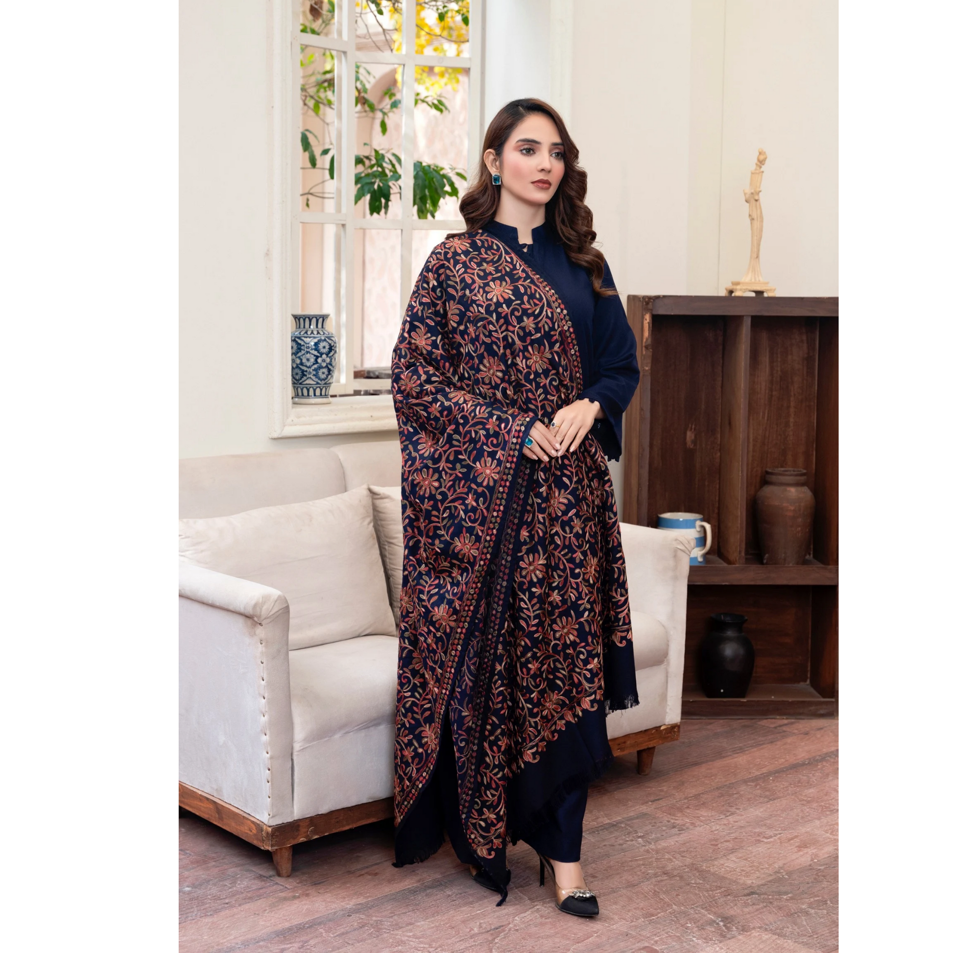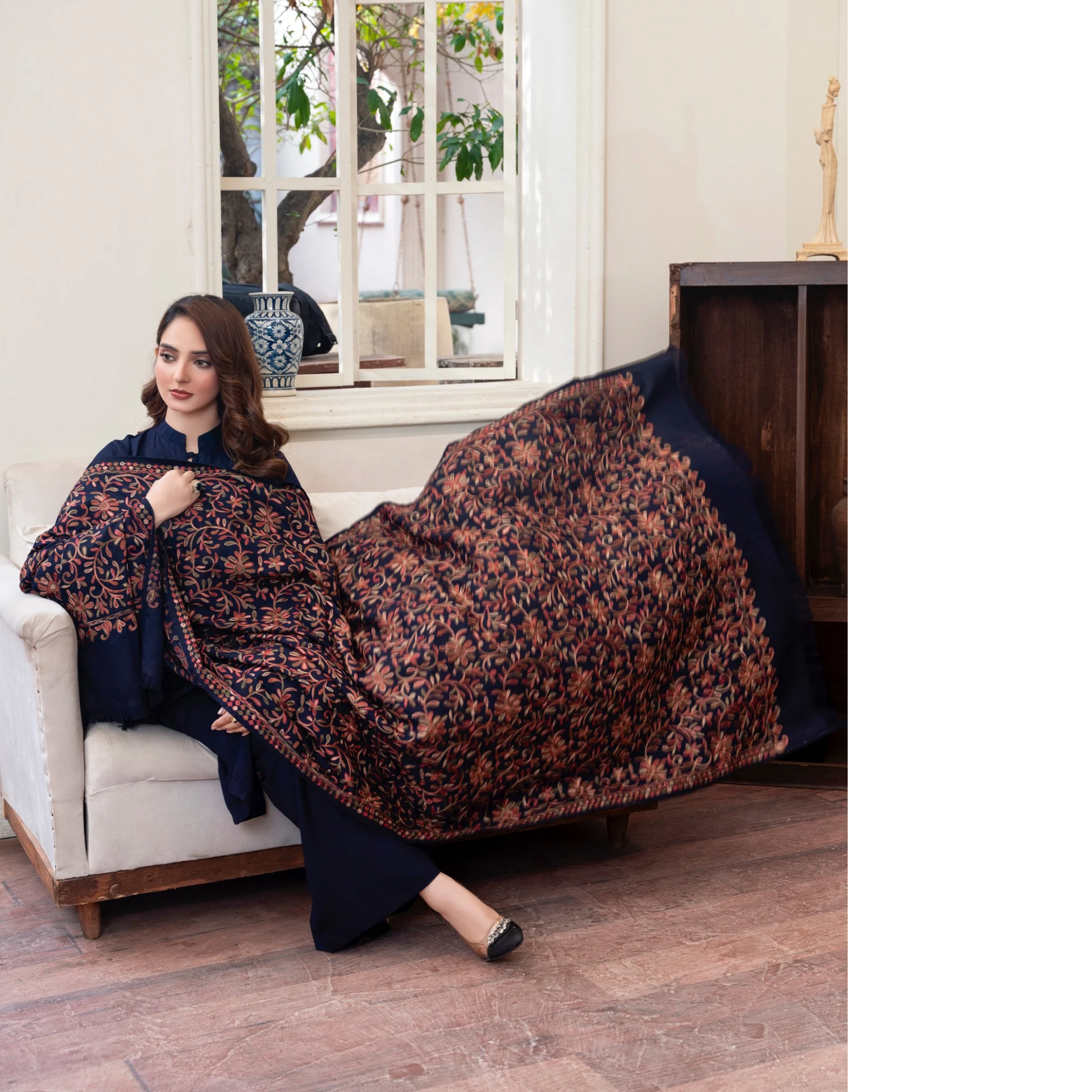 Introducing our stunning dress, made from luxurious Dhanak winter fabric. This dress is complemented by an intricately embroidered shawl, adding a touch of elegance. The shirt is designed in a chic stitching style, ensuring both comfort and fashion for the colder months.