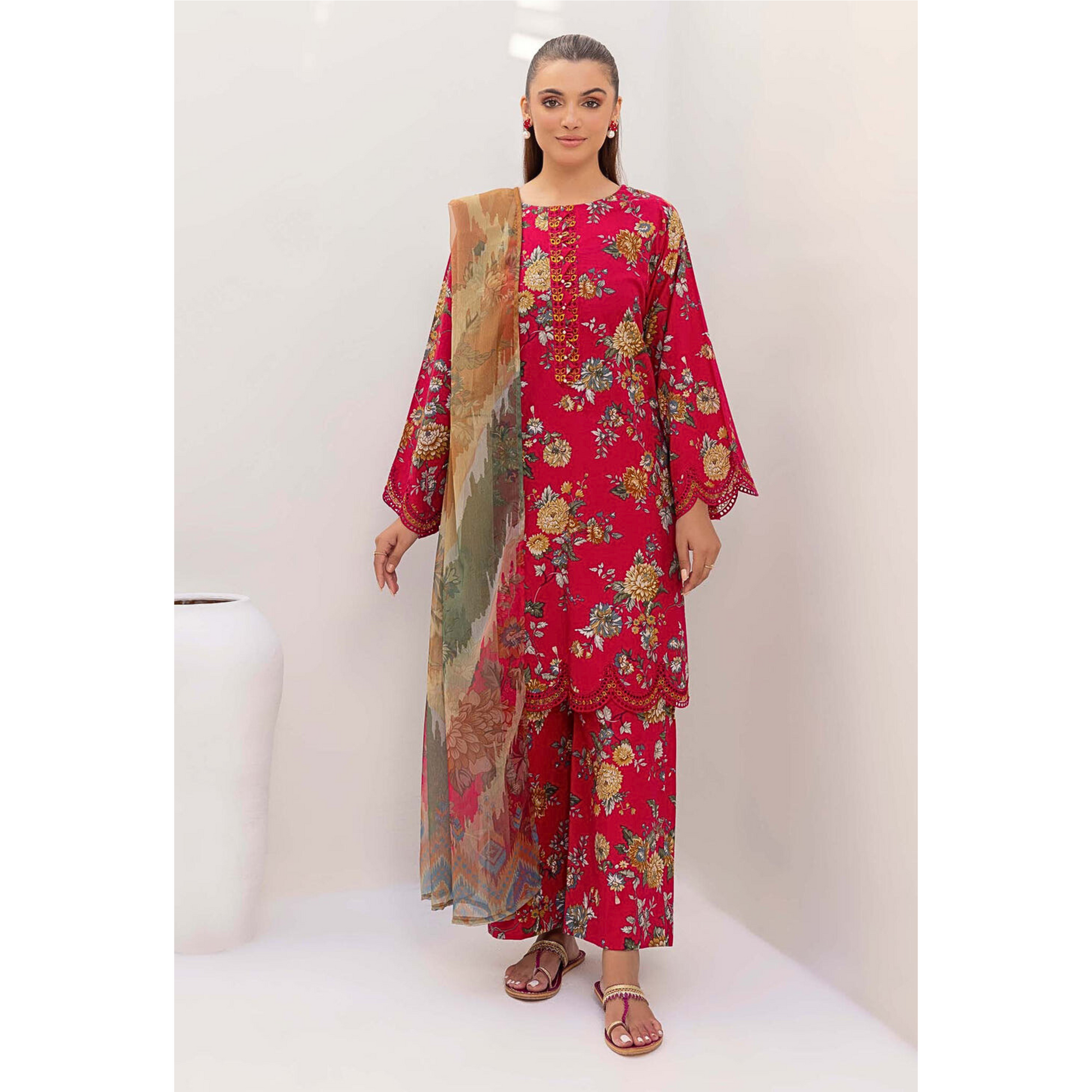 Hot pink 3 Pc Printed Khaddar Ready to Wear Dress - Adan's libas
