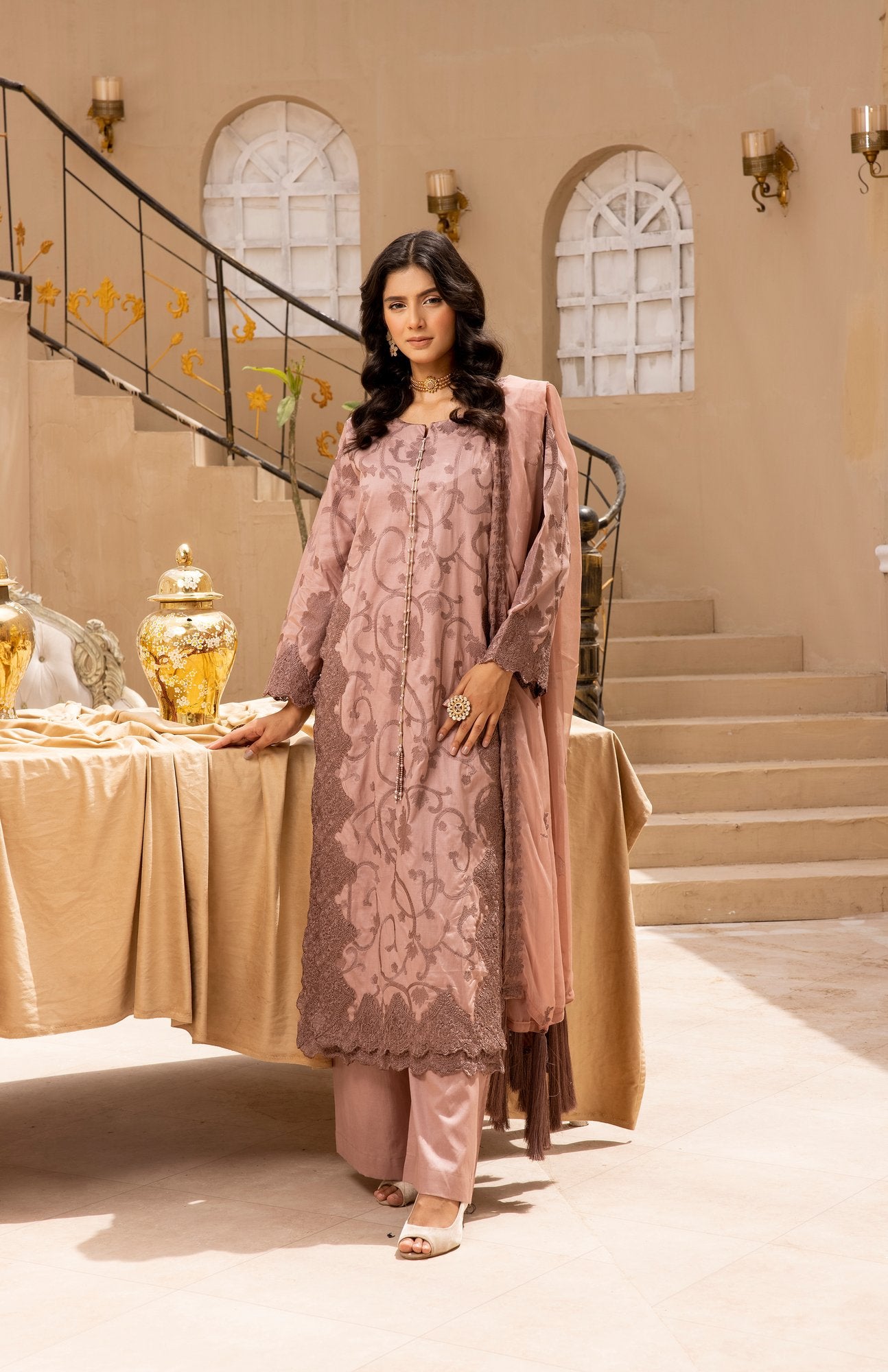 Rosy Tan|Embroidered Cambric Cotton|3 Pc|Simrans