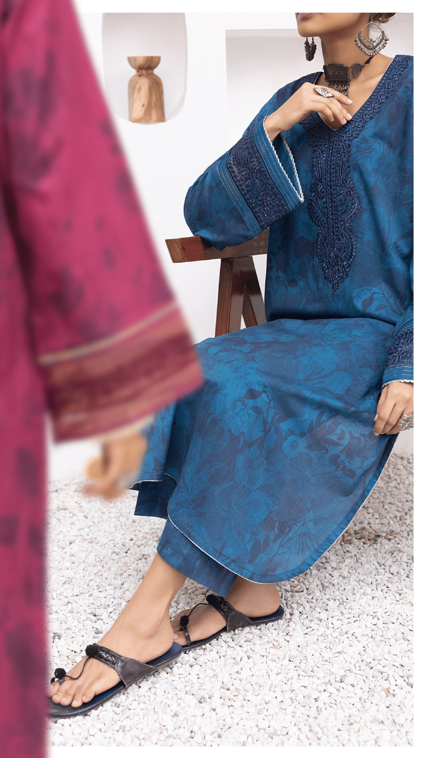 Intoducing our Summer Ethnic Basic Two-Piece Outfits crafted from premium cotton lawn fabric. These ensembles are the epitome of comfort and style, perfect for warm-weather days. The lightweight and breathable cotton lawn material ensures you stay cool and comfortable while the vibrant ethnic patterns add a touch of cultural flair to your wardrobe Each set includes a stylish top and matching bottoms, designed with an effortless fit that flatters all body types. Whether you're heading to a casual outing or a festive gathering, these two-piece outfits offer a versatile and chic option that combines tradition with contemporary fashion Embrace the summer season with our beautifully designed ethnic basics, celebrating both comfort and style.
