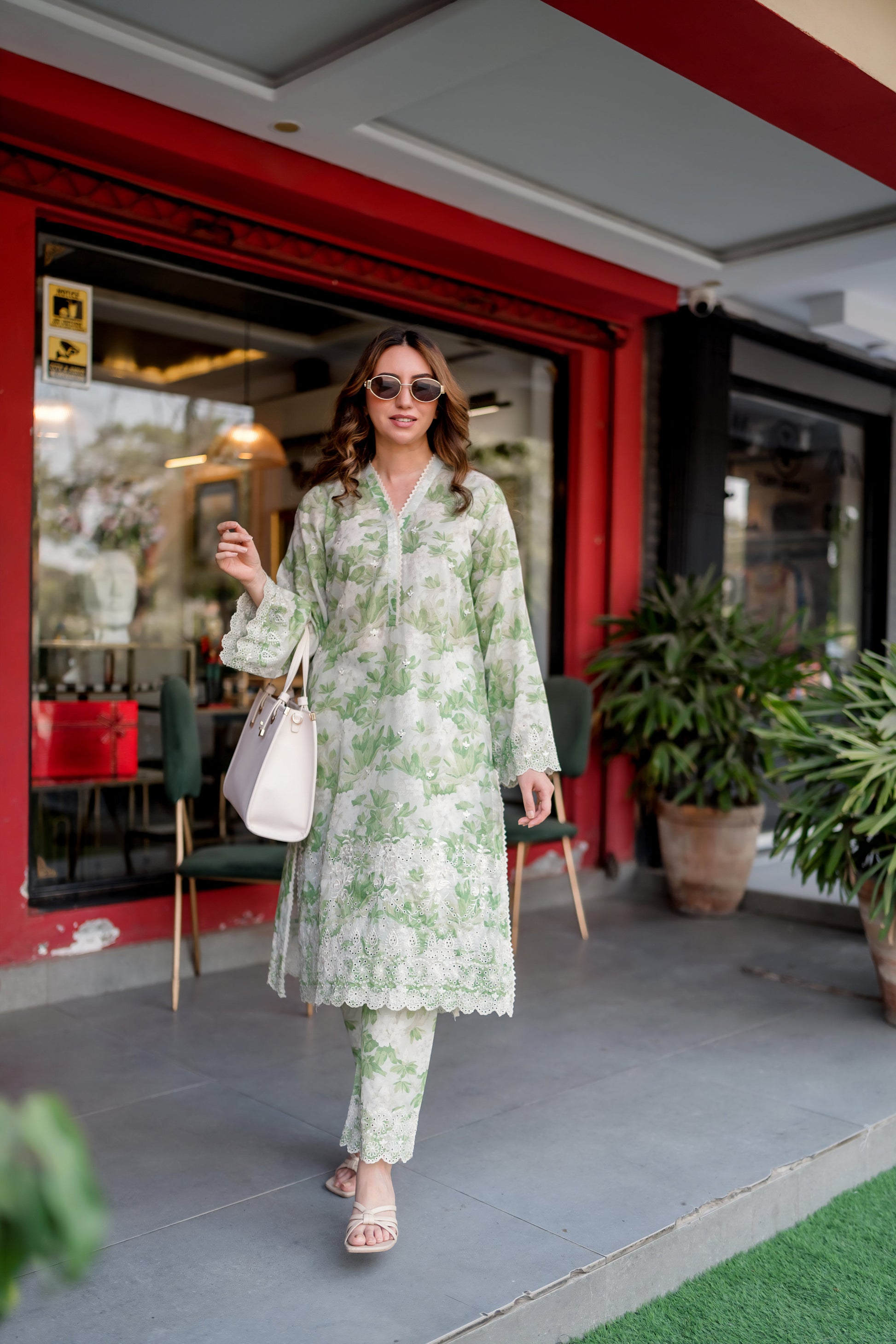 (Green & White) 2 Pc | Ready to Wear | Embroidered Printed | Cambric Shirt & Trouser | Lakhany