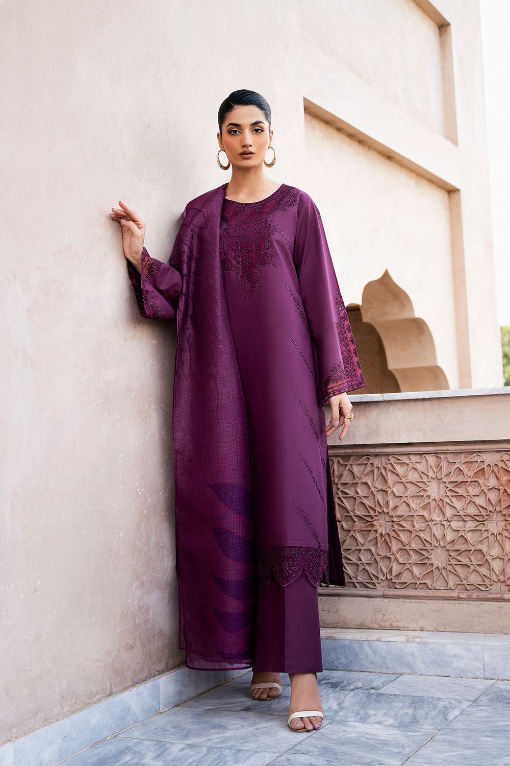 (Purple) "MIZAJ" Embroidered Lawn 3Pc Collection-Esra Fashion