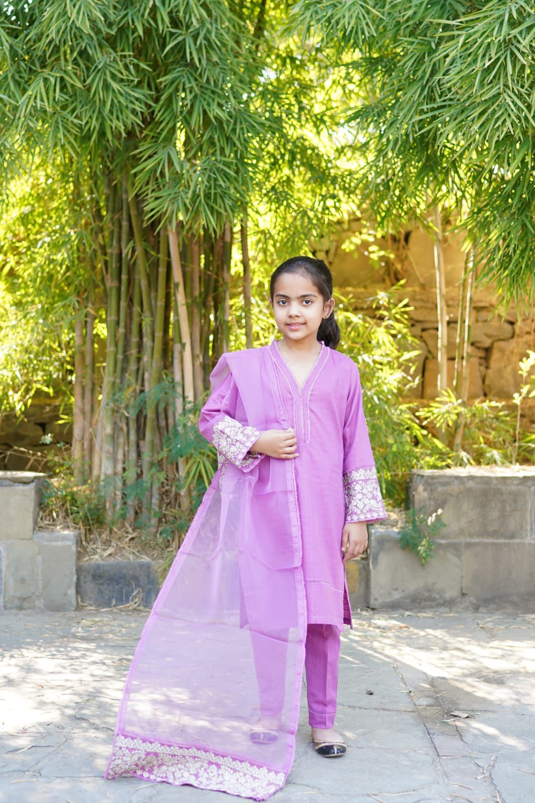 (PINK) Kids Embroidered Cotton 3 piece Suit